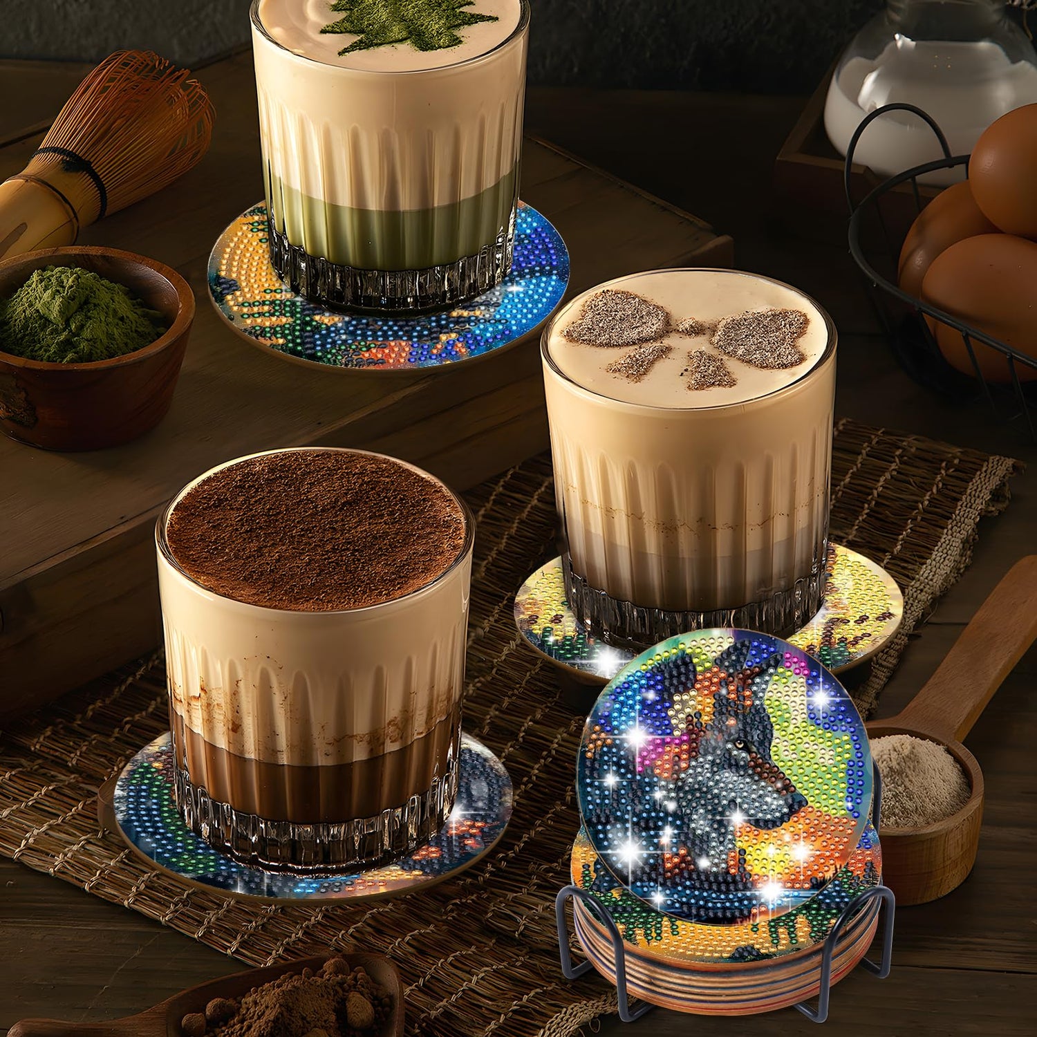 - Versatile Decor & Surface Protection: This wolf diamond art coasters suitable for protecting surfaces from heat and moisture while adding a bold, artful centerpiece to living rooms, offices, cafes, or study nooks