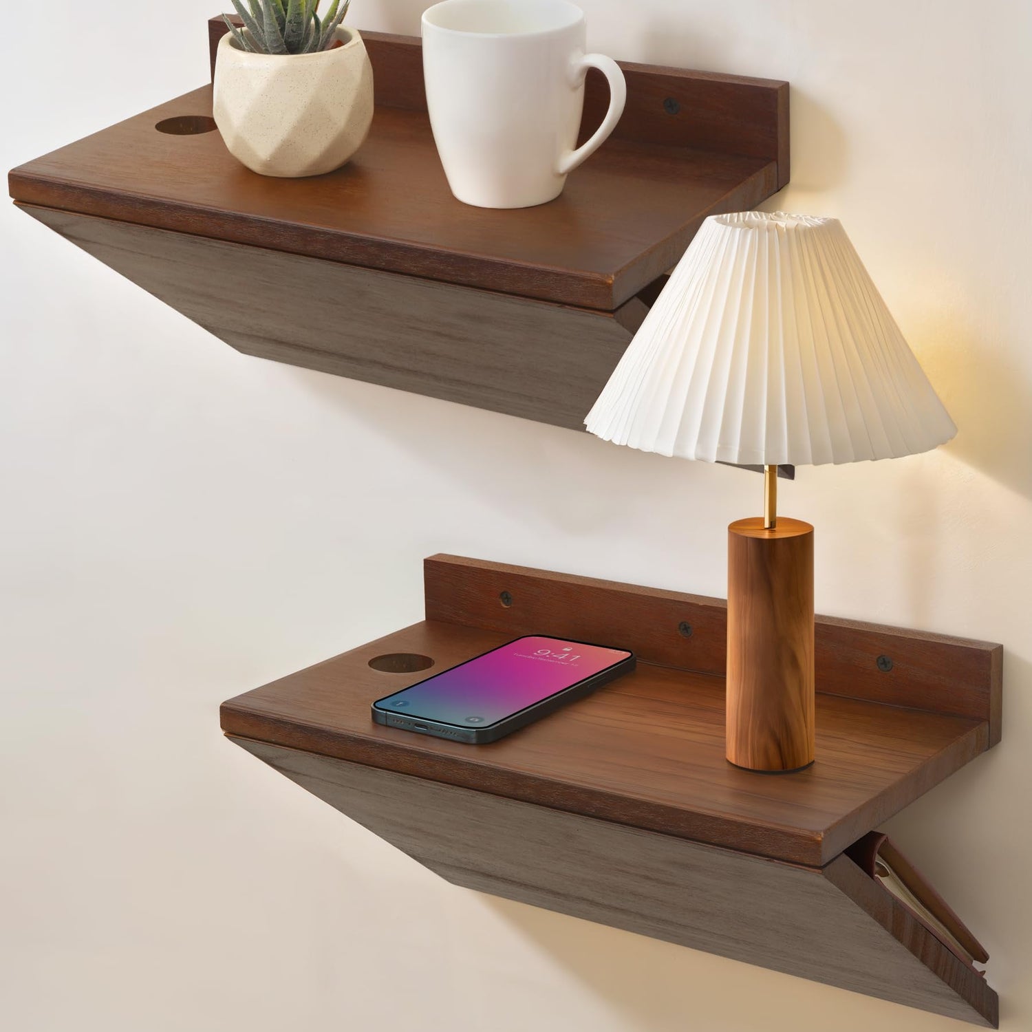 - This wall-mount nightstand is easy to install with pre-drilled holes and hardware, saving your time and effort