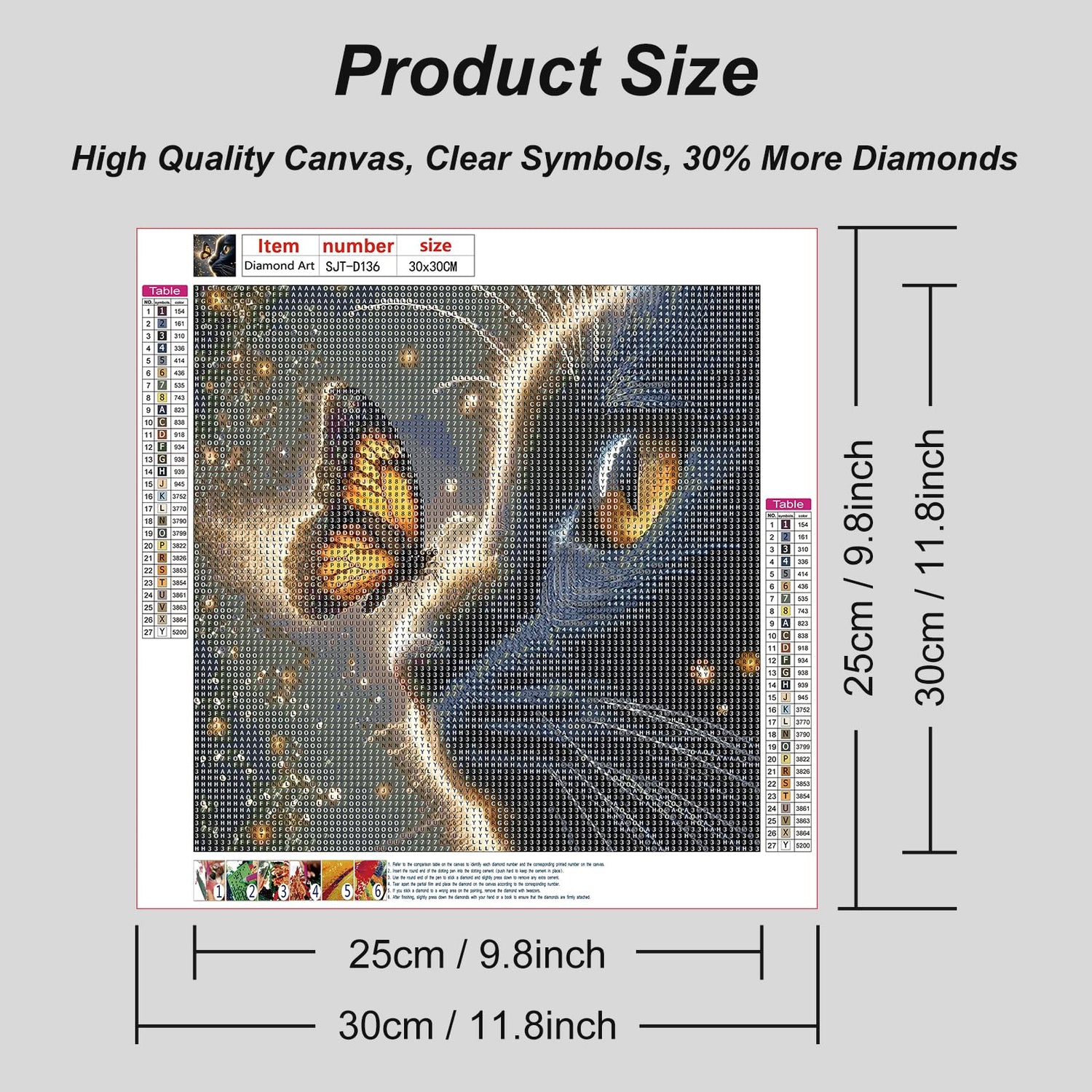 SJUTOUCI Cat Butterfly Diamond Painting Kits for Adults, Diamond Art Kits for Beginners, DIY 5D Full Drill Gem Craft Art for Home Decoration Gift 12x12 inch, Animals