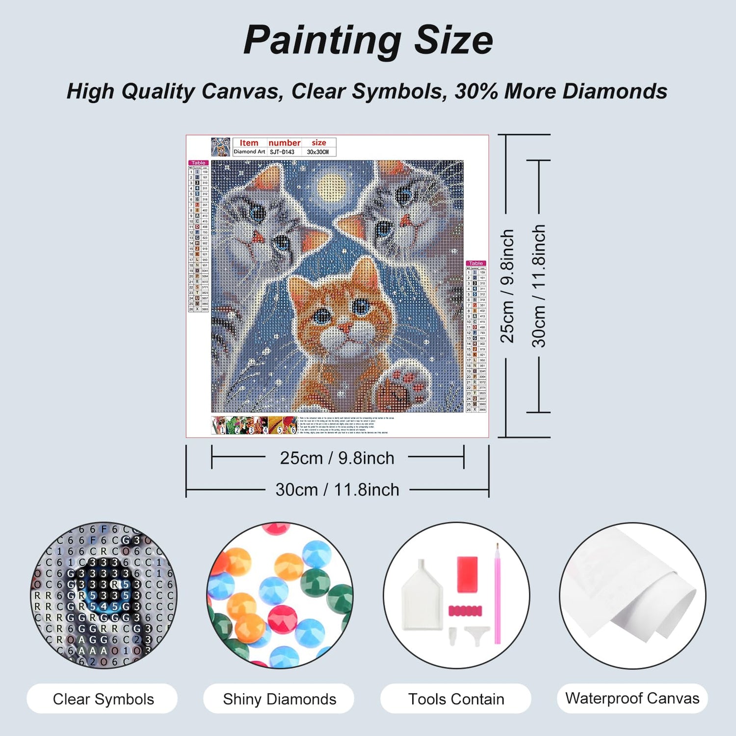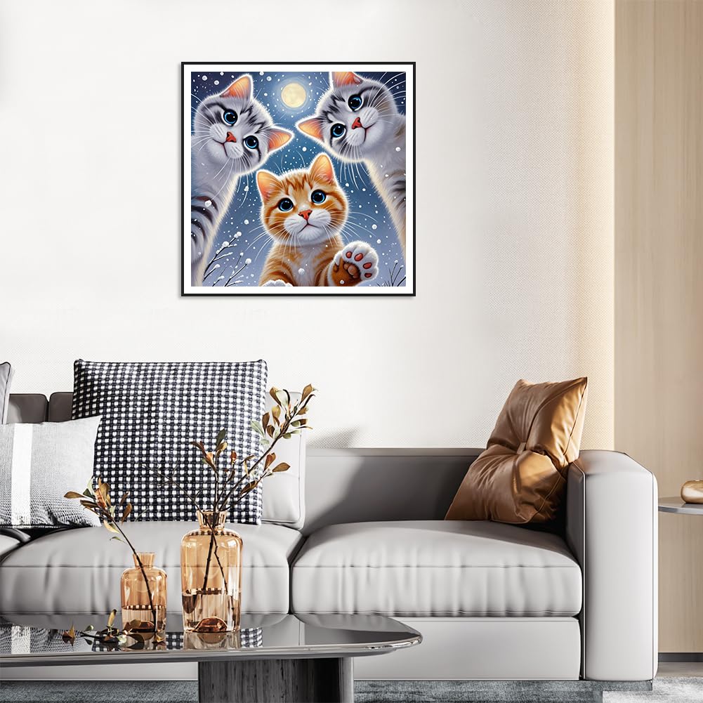 SJUTOUCI Cat Diamond Painting Kits for Adults, Diamond Art Kits for Beginners, DIY 5D Full Drill Diamond Dots Gem Craft Art Home Wall Decor 12x12 inch, Winter