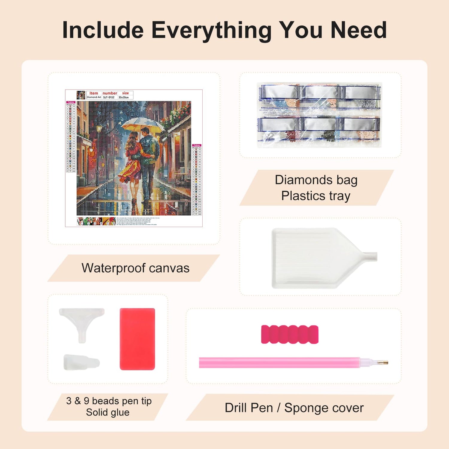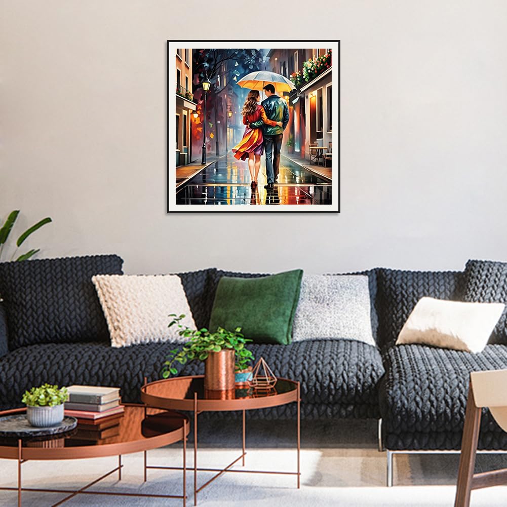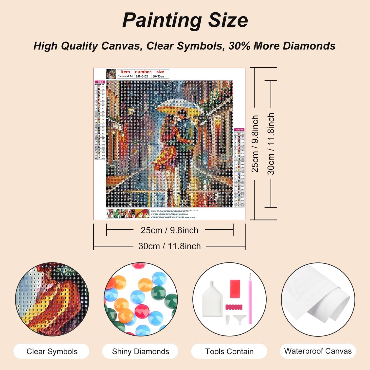 SJUTOUCI Couple in Rain Diamond Painting Kits for Adults, Diamond Art for Beginners, 5D Round Diamond Dots Gem Craft Art Home Wall Decor12x12 inch, Valentine's Day