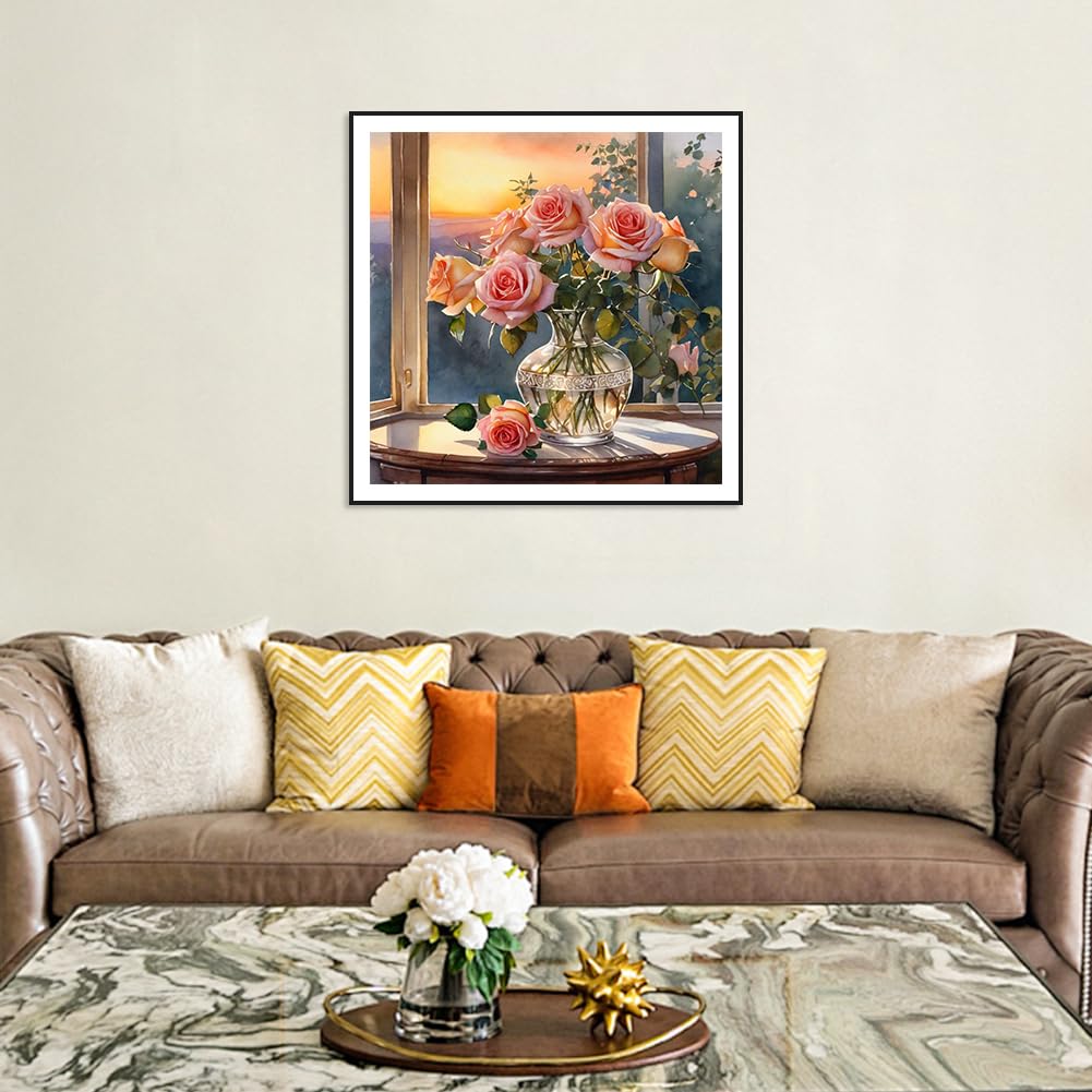 SJUTOUCI Diamond Painting Kits for Adults, Rose Flower Diamond Art Kits for Beginners, 5D DIY Full Drill Gem Craft Art for Home Decor Gift 11.8x11.8 inch