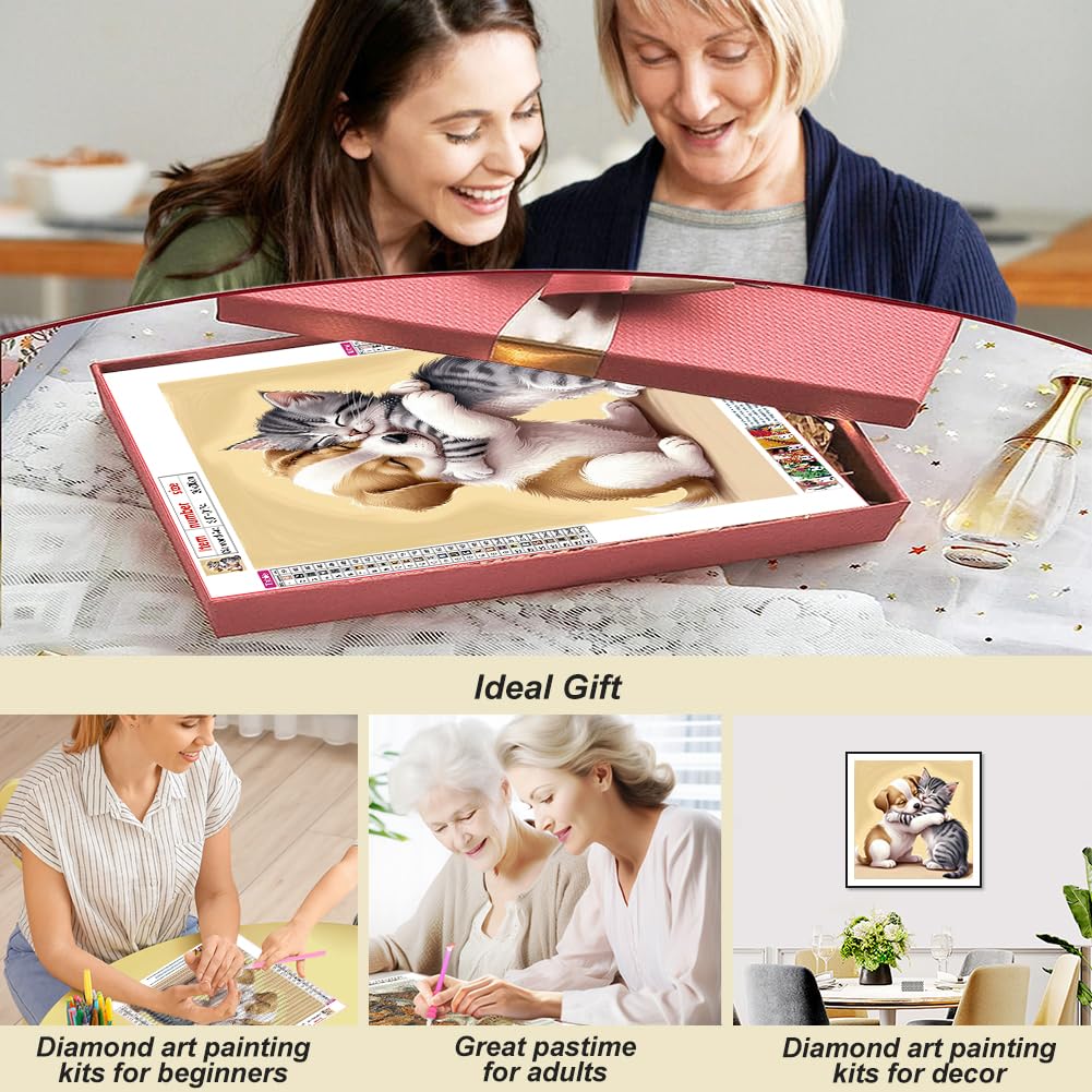 SJUTOUCI Dog and Cat Diamond Painting Kits for Adults, Diamond Art Kits for Beginners, 5D Round Diamond Dots Gem Art Craft for Home Wall Decor 12x12 inch, Animals