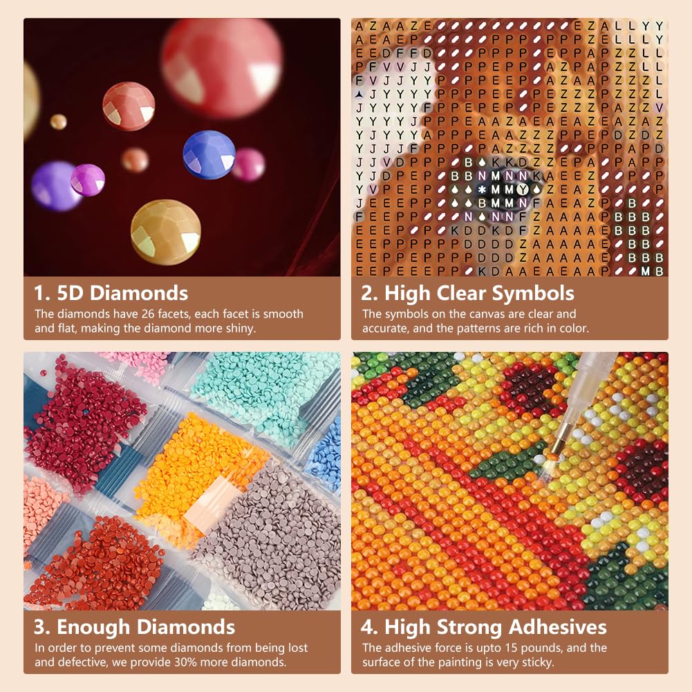 - Perfect Gift: The completed diamond art is very perfect for decorating different styles of living room, dining room, bedroom and office. Diamond art kit is a great choice for gift giving, suitable for birthday, Valentine's Day, Christmas and more