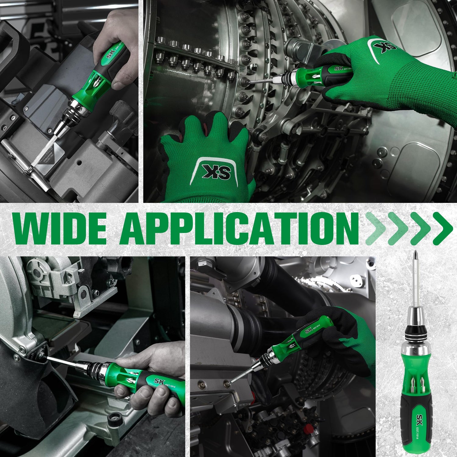 SK 12-in-1 Ratcheting Screwdriver, 216-P, Multi-bit Driver with Quick-Load Mechanism, S2 Steel, with Phillips, Slotted, Star, Square Bits Stored in Handle