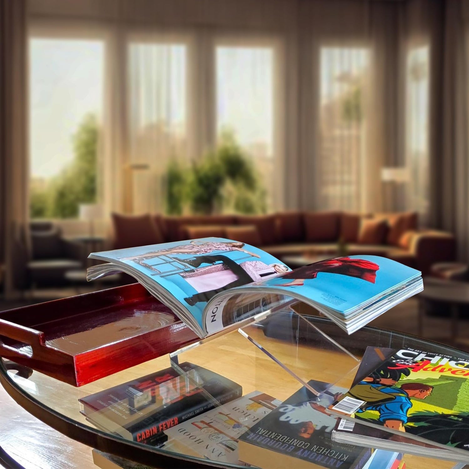 - Elevate Your Space: Showcase your books, cookbooks, and magazines with elegance using our Clear Acrylic Book Stand. Elevate your home, office, or coffee table decor to new heights of sophistication.