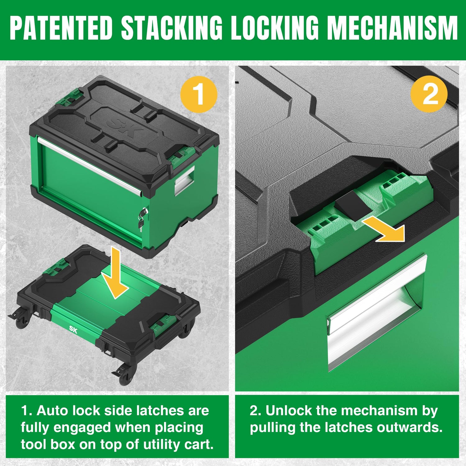 SK Modular Stackable Storage Tool Box, 20.5 Inch, 1-Drawer Steel Box, Patented Auto-Lock Mechanism, Holds up to 60 Lbs