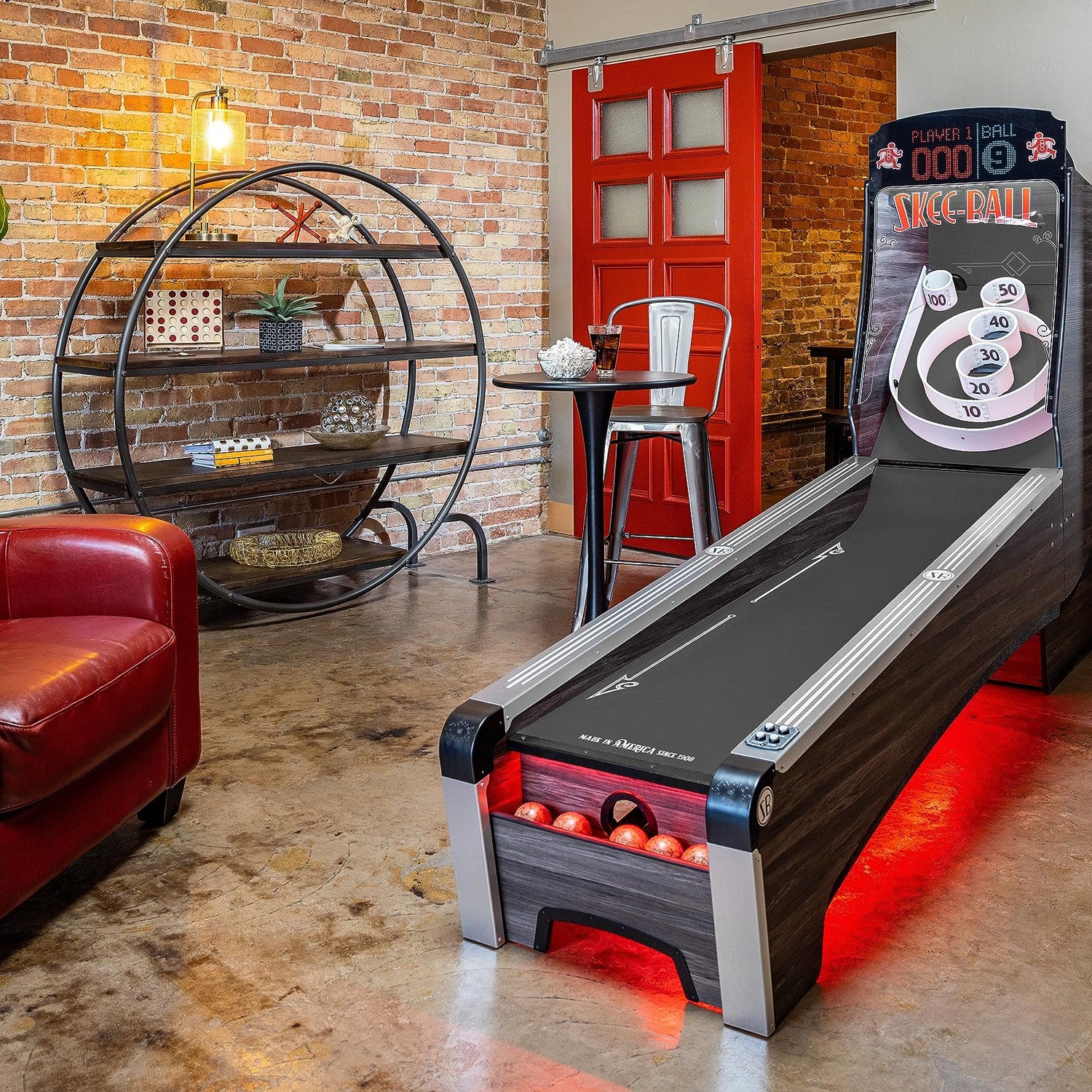 - PERFECT FOR HOME GAME ROOMS: Includes (5) arcade-style woodgrain balls, a colorful pixel display with exciting visuals, lit target area and a color-changing under-glow. Take your game room to the next level!