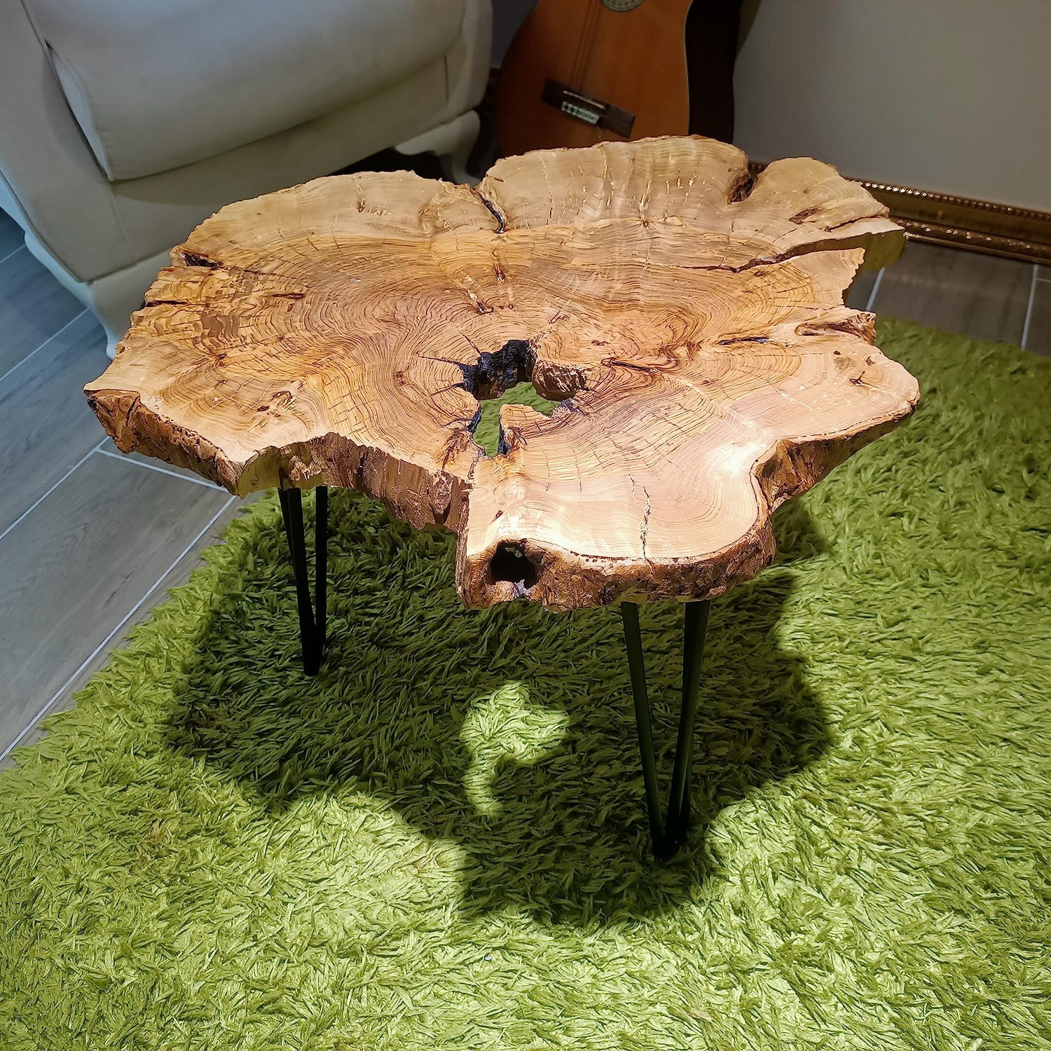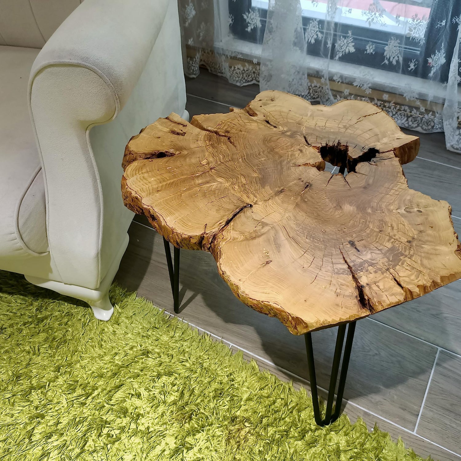 skilled hands Olive Side Table Natural Live Edge end Table 24" Length with Black Legs Rustic Coffee Table Nesting Table l