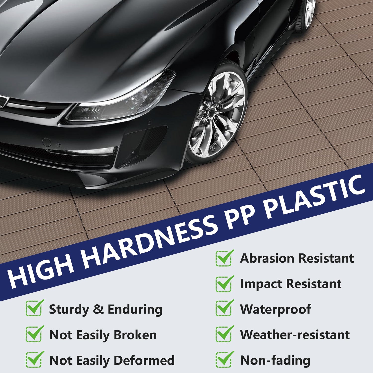 - 【Sturdy & All Weather】The interlocking deck tiles are crafted of high-quality, high-hardness PP plastic, offering excellent stability and load capacity, not easy to fade, expand, deform, or crack. Our waterproof deck tiles can withstand changing weather such as sunshine, rain, and snow, so they can be used in all-weather situations. This makes the plastic outdoor floor tiles a reliable and long-term solution for upgrading your outdoor space.