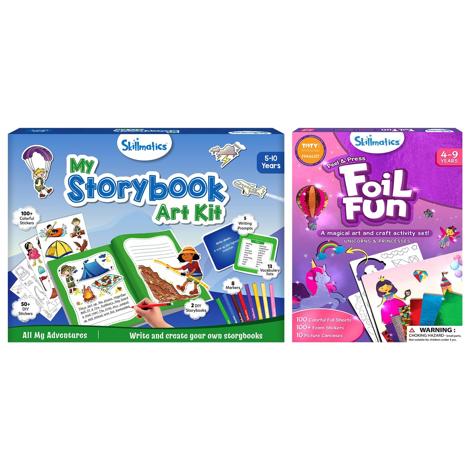 - MY STORYBOOK ART KIT ADVENTURES: Step into the thrilling world of adventure with Skillmatics' Storybook Art Kit! Our kit includes everything your child needs to become an author – writing prompts, vocabulary lists, colorful stickers, markers, and hardbound books for their stories!
