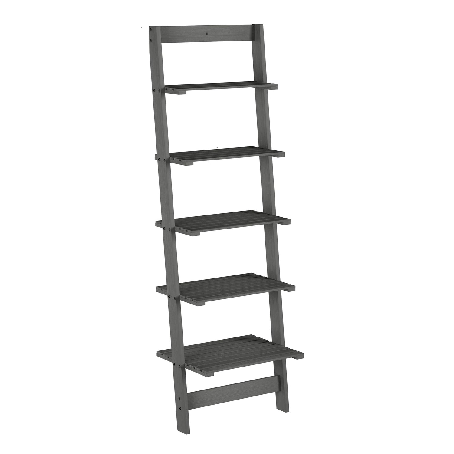 Skinny Ladder Bookshelf - 5-Tier Shelving Unit - Whitewash Wood Farmhouse Decor for Living Room, Bedroom, Office, and Entryway by Lavish Home (Gray)