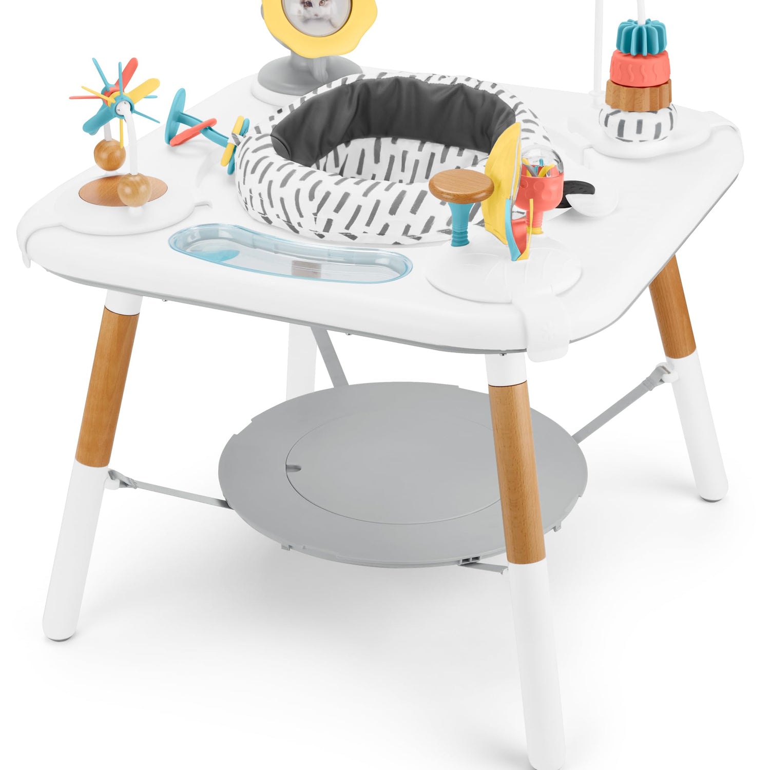 - Convenient and User-Friendly: With easy tool-free assembly and FSC-certified wood, our activity center features an adjustable foot platform and non-skid feet. Up to 25lb/11.3 kg weight capacity. Additionally, the seamless transformation into a play table with a hidden storage bin ensures continued engagement and organization. Coordinates with Skip Hop’s Discoverosity Montessori-Inspired Collection