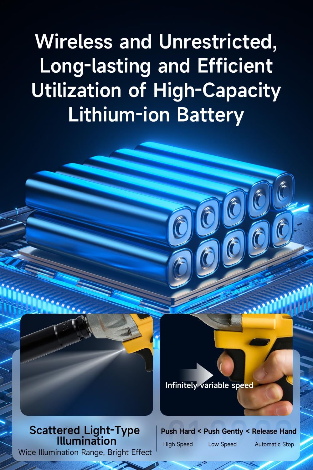 - 【Brushless Motor & High Power Functionality】 Employing the latest brushless motor technology, the Cordless Impact Wrench not only delivers superior power output but also significantly enhances its performance, providing stronger torque and stable operational efficiency. Enhanced efficiency and convenience in operation are achieved, while the application of brushless motors extends the lifespan of the Cordless Impact Wrench, delivering sustained and highly reliable operation.