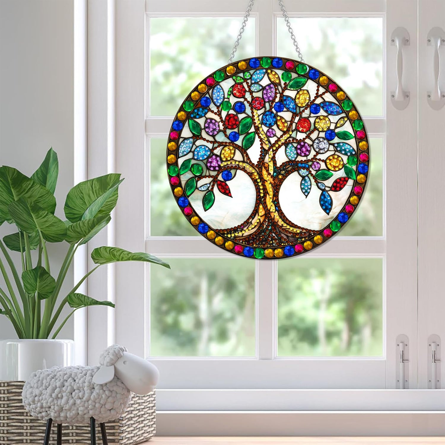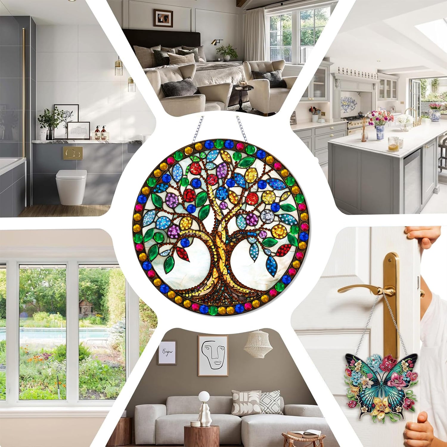 SKRYUIE Hanging Diamond Art Kits for Adults Pendant Tree, Special Shaped Crystal DIY Diamond Painting Kit, Acrylic Board Wreath Pendants Double Sided, Home Decor 7.29 x 7.29 Inch