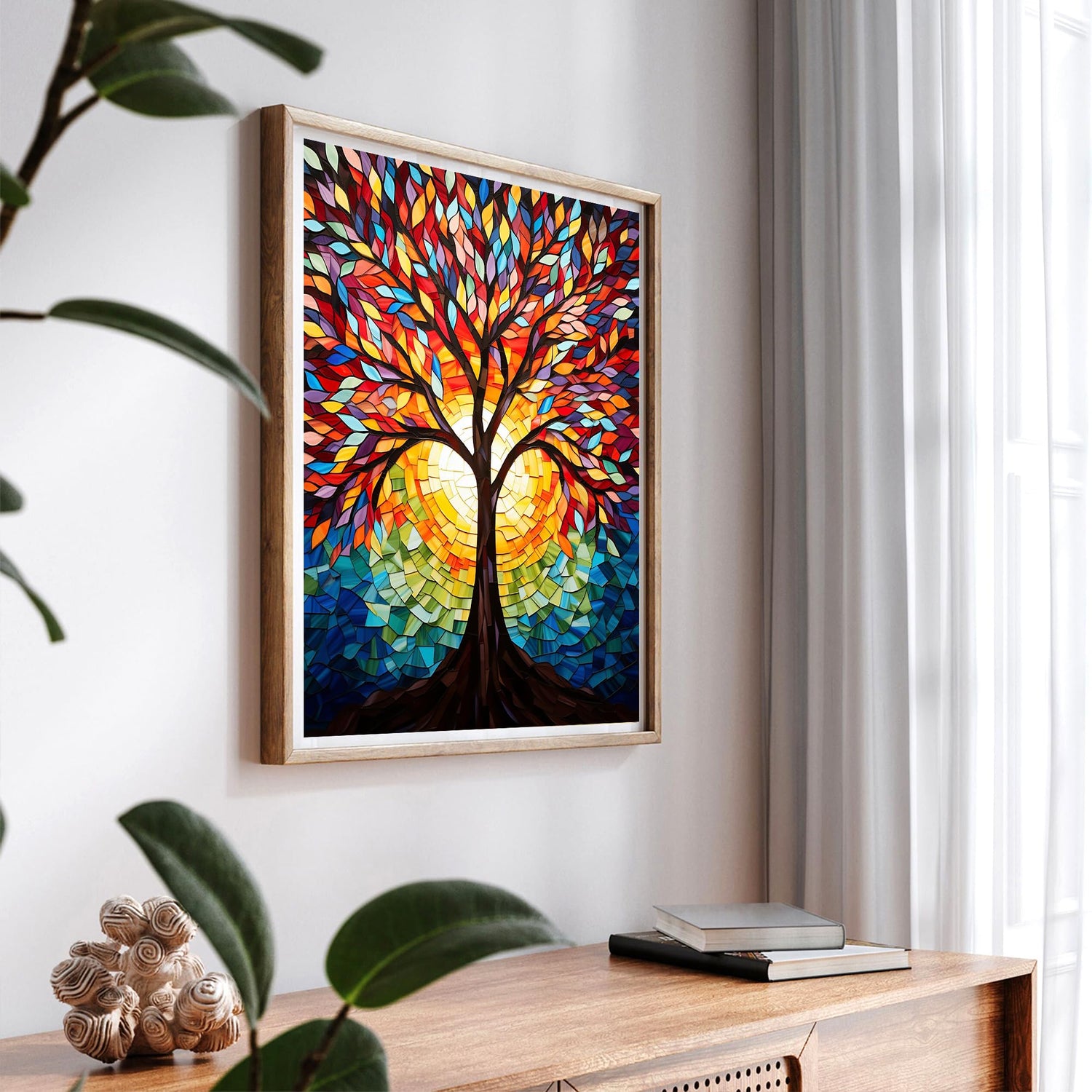 - The vibrant and colorful tree in the painting symbolizes the richness of life and the passage of time. Each leaf, painted in different hues, represents a unique moment, weaving together the tapestry of existence. The heart-shaped trunk signifies love at the core of all experiences. This artwork invites viewers to reflect on the beauty and diversity of life's journey.