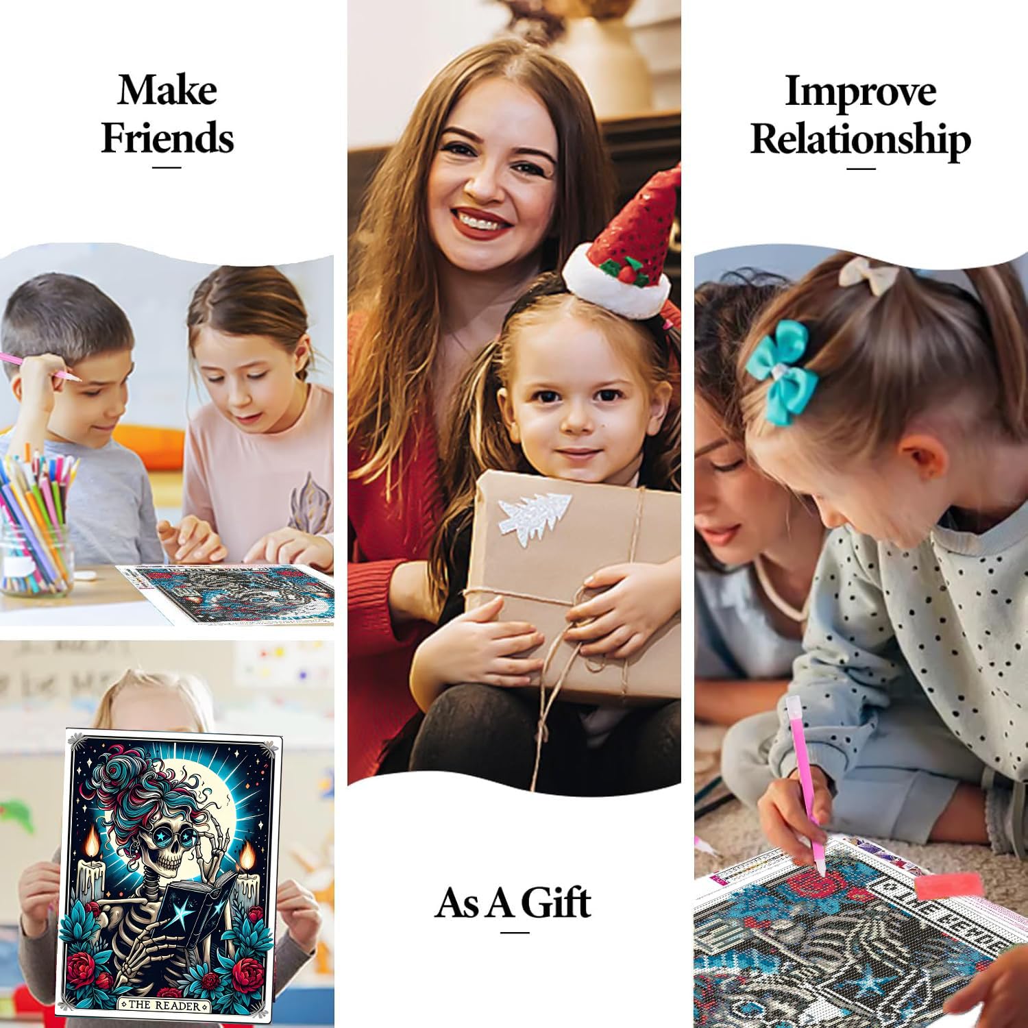 - Special Gifts: Skull diy diamond painting kit for adults will be the better gift for friends and family. It can help parents kill time; can cultivate practical ability and patience. Improve their understanding of color and aesthetics. They can relieve stress for friends