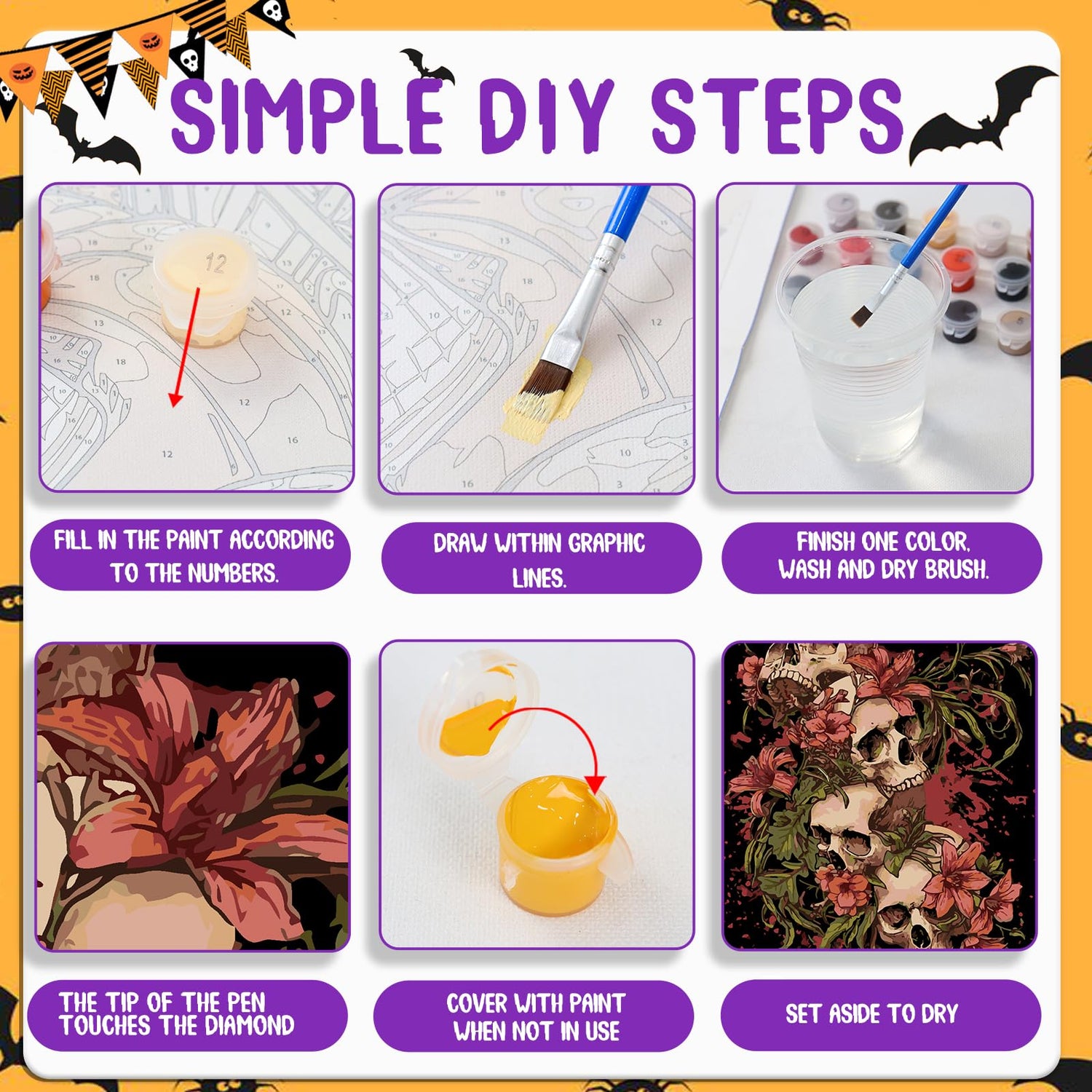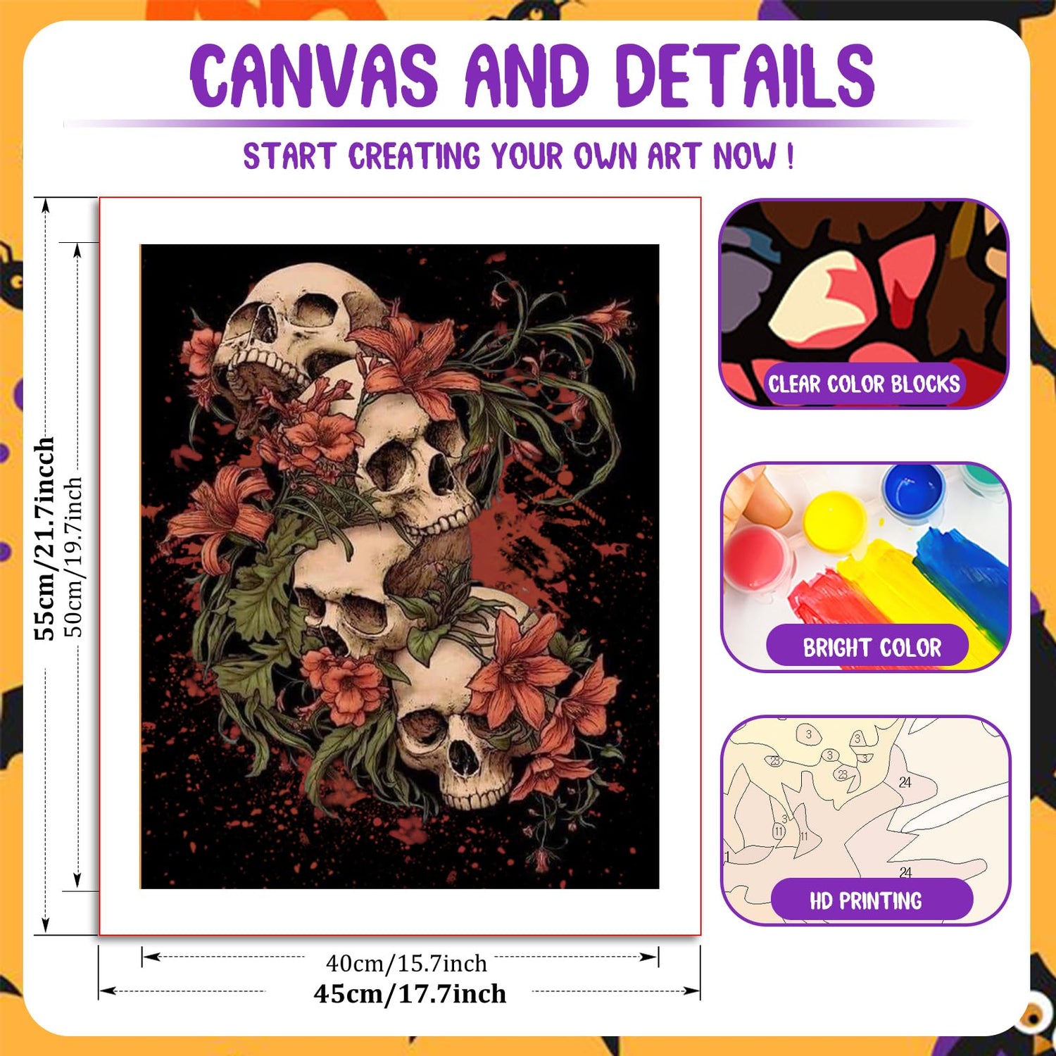 - HD Canvas:Different from other Skull paint by number kits,our painting by numbers uses high-definition color canvas.The number area is easier to distinguish,and paint is easier to adhere to it.Colored canvas can prevent eyestrain and make painting easier