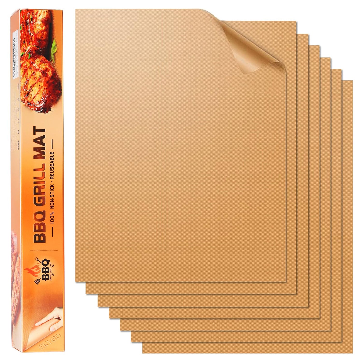 SKYBD Copper Grill Mats for Outdoor Grill(Set of 6), Nonstick & Easy to Clean BBQ Grilling Sheets, Reusable & Heavy Duty Mats Works on Outdoor Gas, Electric, Charcoal Grill