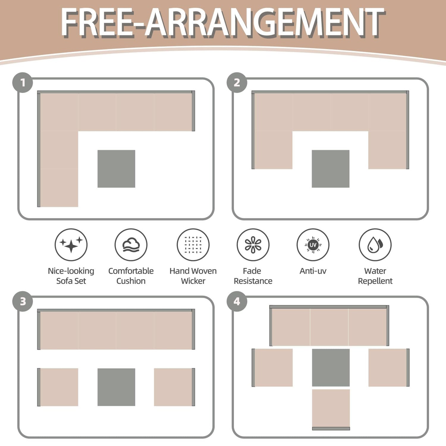 - FOR ALL OCCASIONS - Using wicker patio furniture Customize your seating arrangement freely to suit different occasions like backyards, garden,or pools. (Notice: Due to the number of packages sent out being three, your packages may not arrive at the same time, please contact us if there is a problem. )