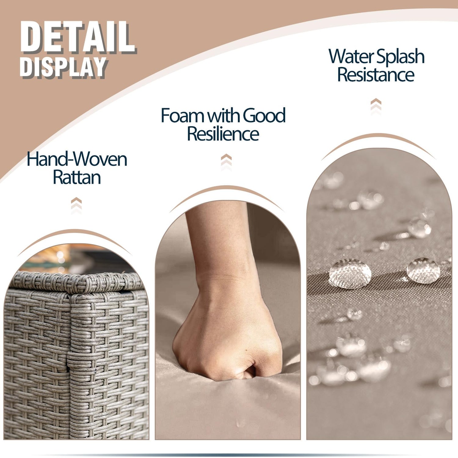 - WATERPROOF & ANTI-SLIP DESIGN - The 7 pieces outdoor patio conversation set is waterproof design, including rattan and cushions and backrest. The bottom comes with non-slip design, which can prevent sliding and give you a better experience.