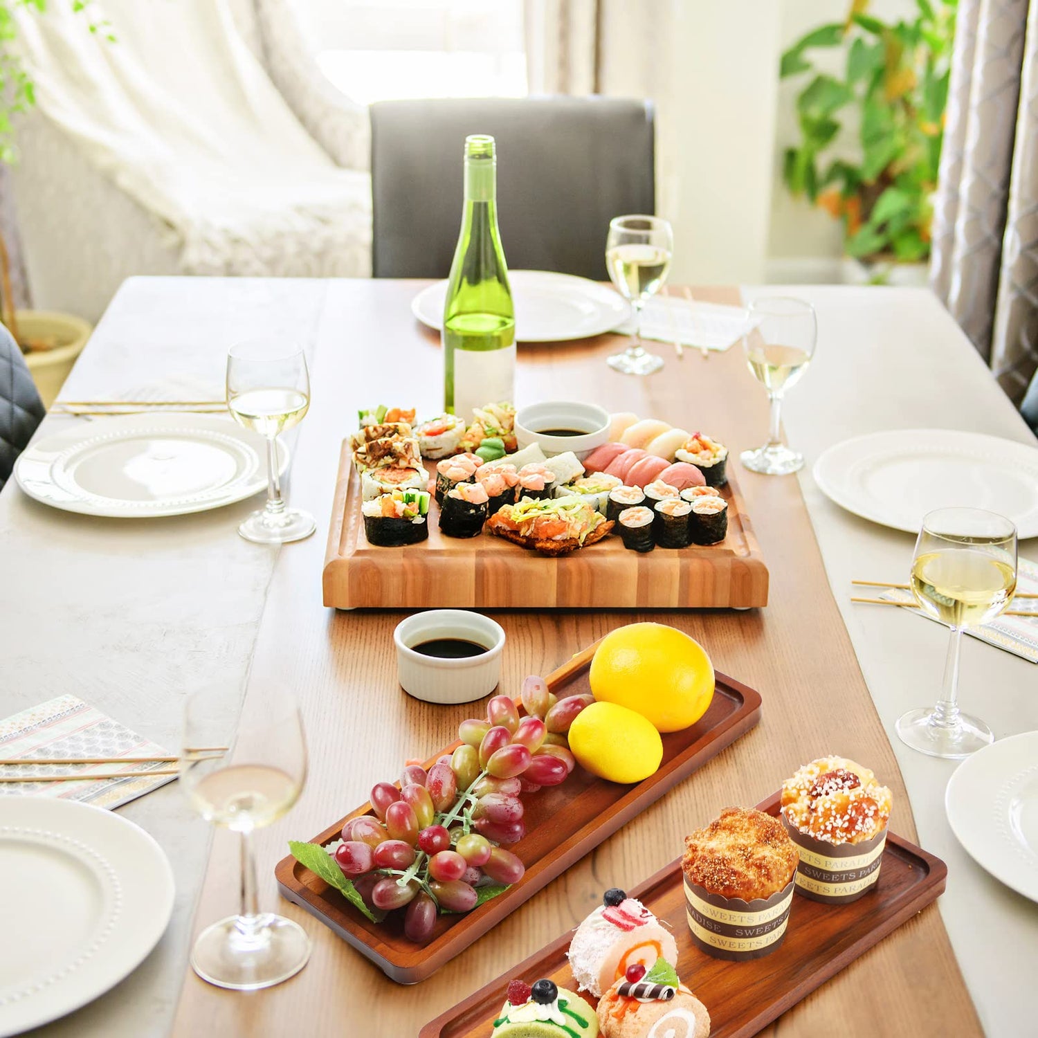 - Wide Applications: the solid wood server platters can be applied to serve various of foods, such as cheese, appetizers, fruits, vegetables, desserts, cookies, cupcakes, etc., which can be placed on a dining table, ottoman, coffee table or kitchen cabinet, good for kitchen, coffee shop, restaurant, birthday, wedding, theme party and many other occasions