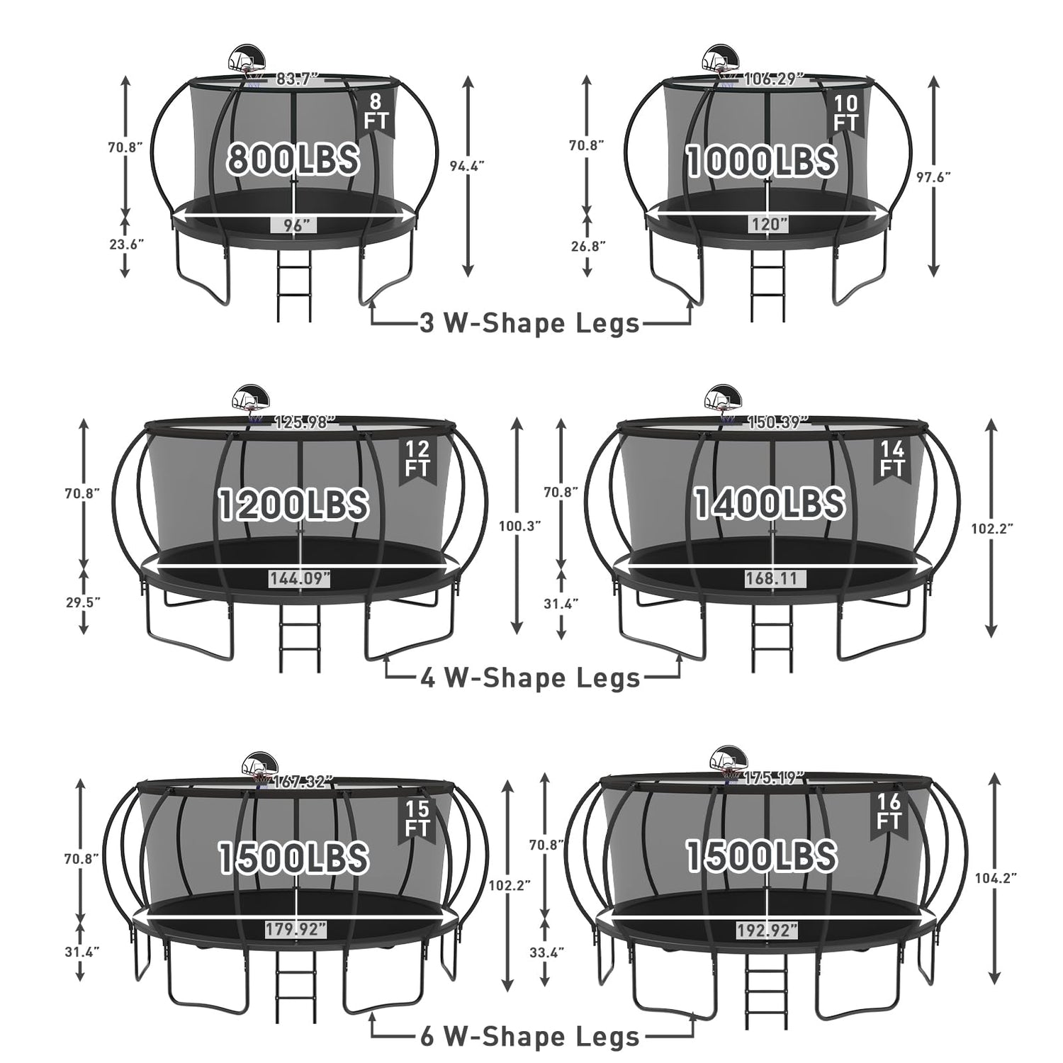 • 【1000LBS Weight Capacity】This 2025 NEW type heavy-duty trampoline is made of black sprayed thickness galvanized steel. Compared with other usual steel, galvanized steel is more stable, glossy, and more reliable. Galvanized steel has the feature of durability which makes it not break for more than 20 years.