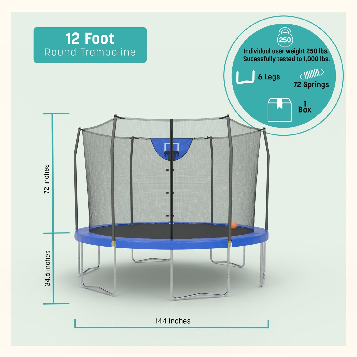 • Maximum User Weight: The trampoline with basketball hoop is tested to support up to 275 lbs, in compliance with ASTM standards. This rigorous testing ensures that the trampoline spring cover and trampoline pad are durable and safe for multiple users.