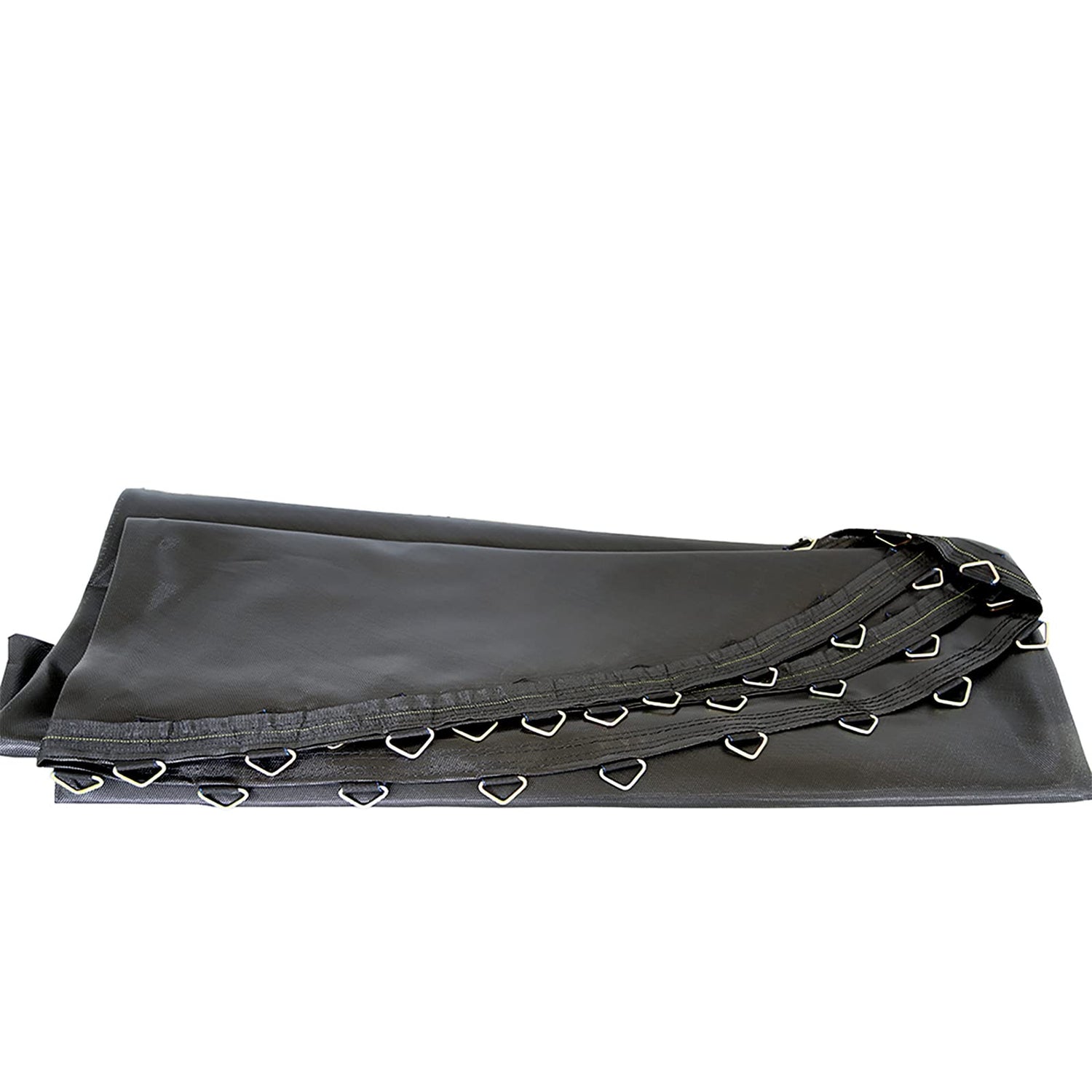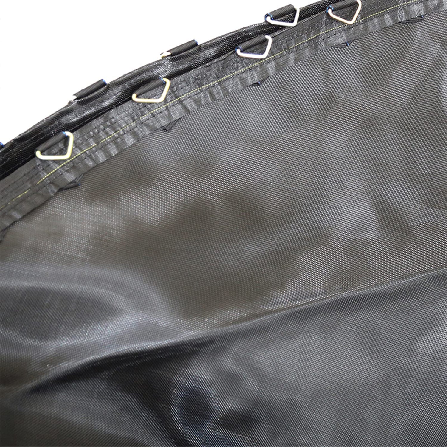 - FEATURES: The jump mat is woven to prevent slipping; The included reinforced V rings make for easy attachment to the enclosure net and springs