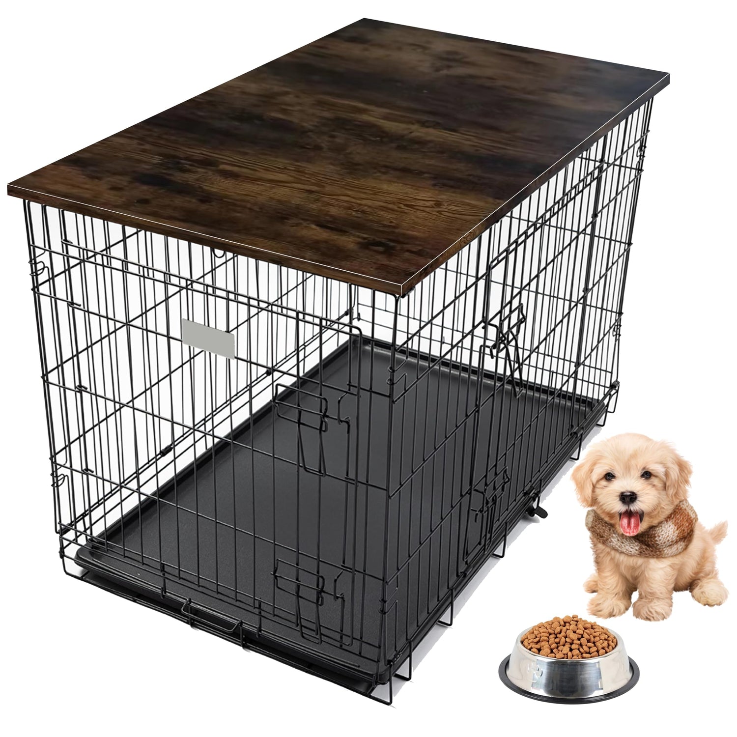 Skywin Dog Crate Topper Wood (Rustic) - 42 x 28 Inches Dog Crate Table Topper, Premium Dog Kennel Topper, Functional Pet Crate Furniture Table Dog Crate Accessories (Does NOT Include Dog Crate)