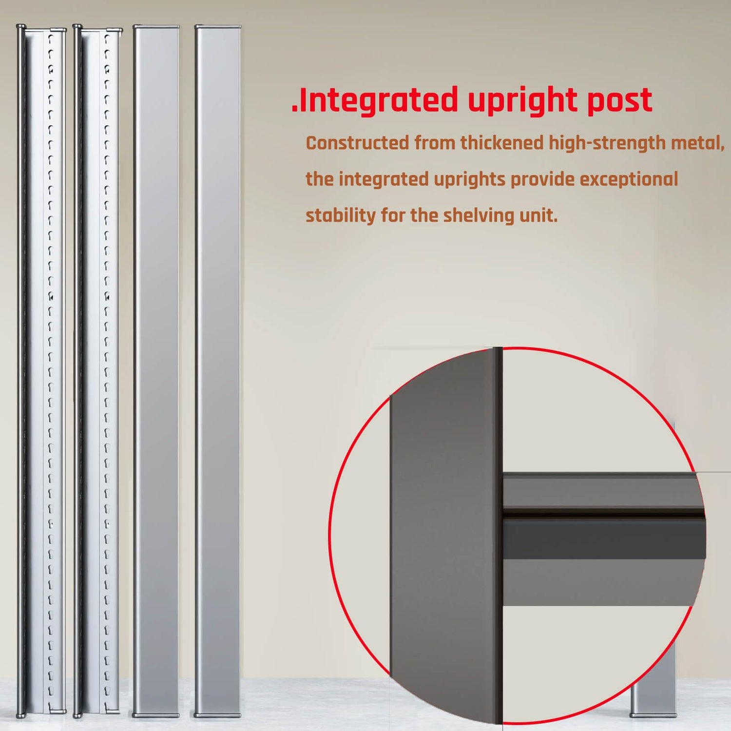 • 【4 Additional Reinforcing Stabilizer Bars】These bars serve as supplementary stabilizers, preventing lateral sway and enhancing overall structural rigidity. By connecting uprights to beams, the lateral support bars create a more robust and stable frame structure, effectively resisting external forces that could cause metal shelving to twist or deform. This not only increases load capacity but also enhances garage shelving safety, ensuring stored items remain secure and worry-free.