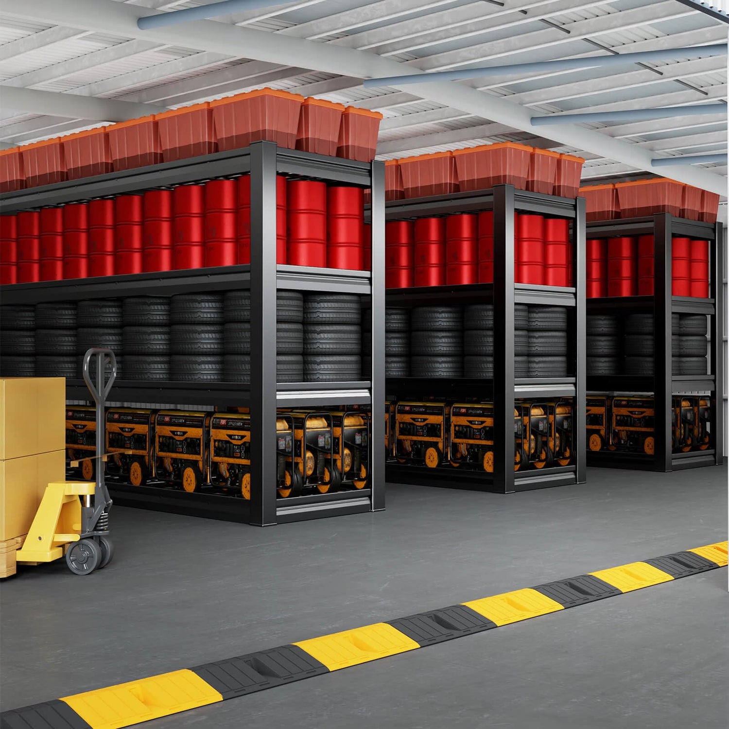 • 【Wider and Thicker Uprights and Beams Than Standard】 The garage heavy-duty shelving features an integrated upright structure that not only enhances overall strength but also increases load-bearing capacity. Reinforced beams effortlessly handle heavy loads, ensuring the shelving remains as stable as ever under high-intensity use. The entire metal shelving system can support up to 3800 pounds.