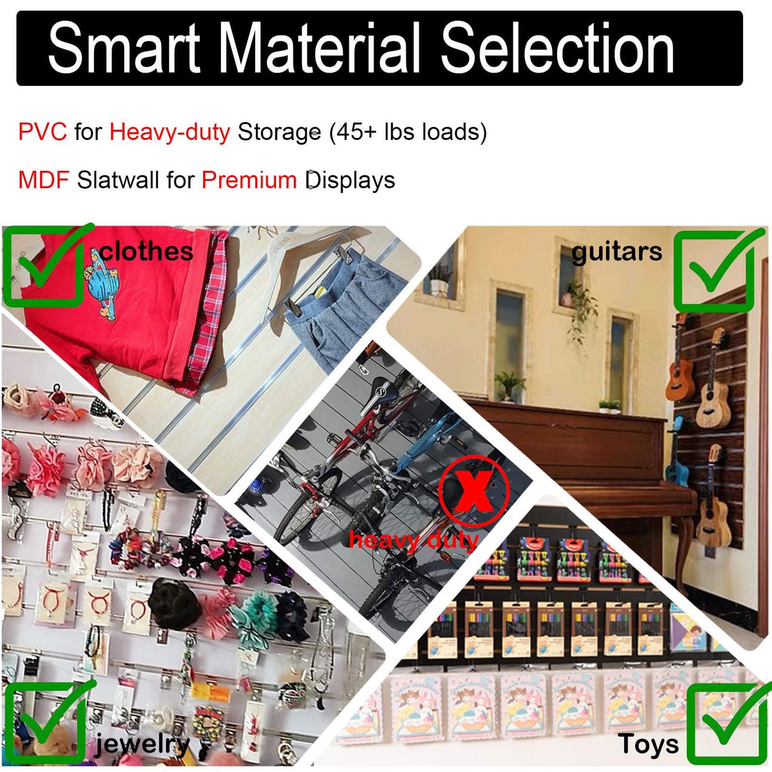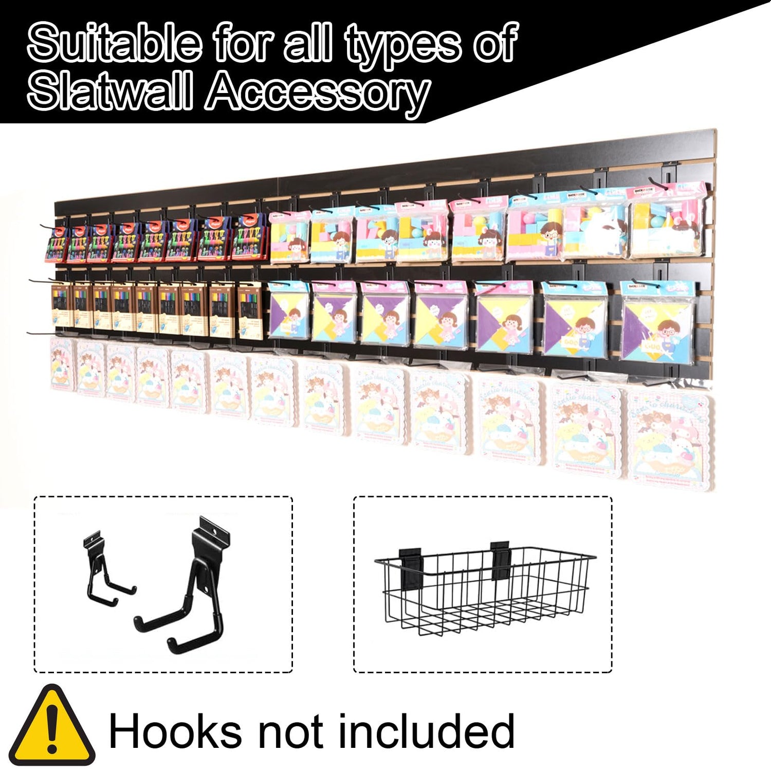 - MDF Slatwall Display System - Perfect for stores, closets or workshops, this versatile, adjustable solution optimizes space and can be instantly rearranged for seasonal displays or new products. Maximize vertical storage space in compact areas while maintaining a sleek, clutter-free look. Modular design adapts to changing needs, easily adds panel space, and combines practicality with modern aesthetics, making it ideal for retail displays, home organization, or store storage.