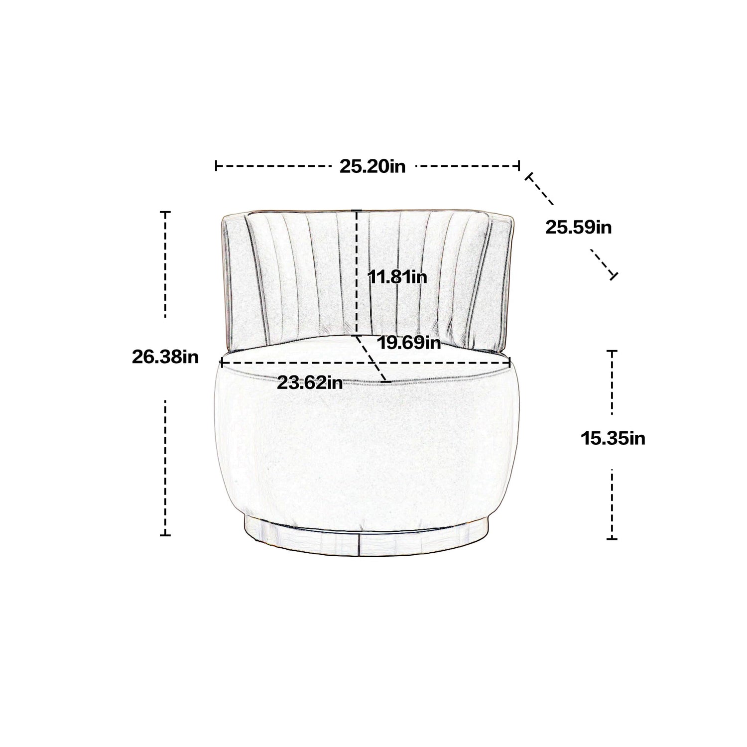 The curved backrest with vertical decorative lines, the rounded contours of the chair body, and the mental gold base make the small swivel accent chair a statement piece that will enhance any decor.