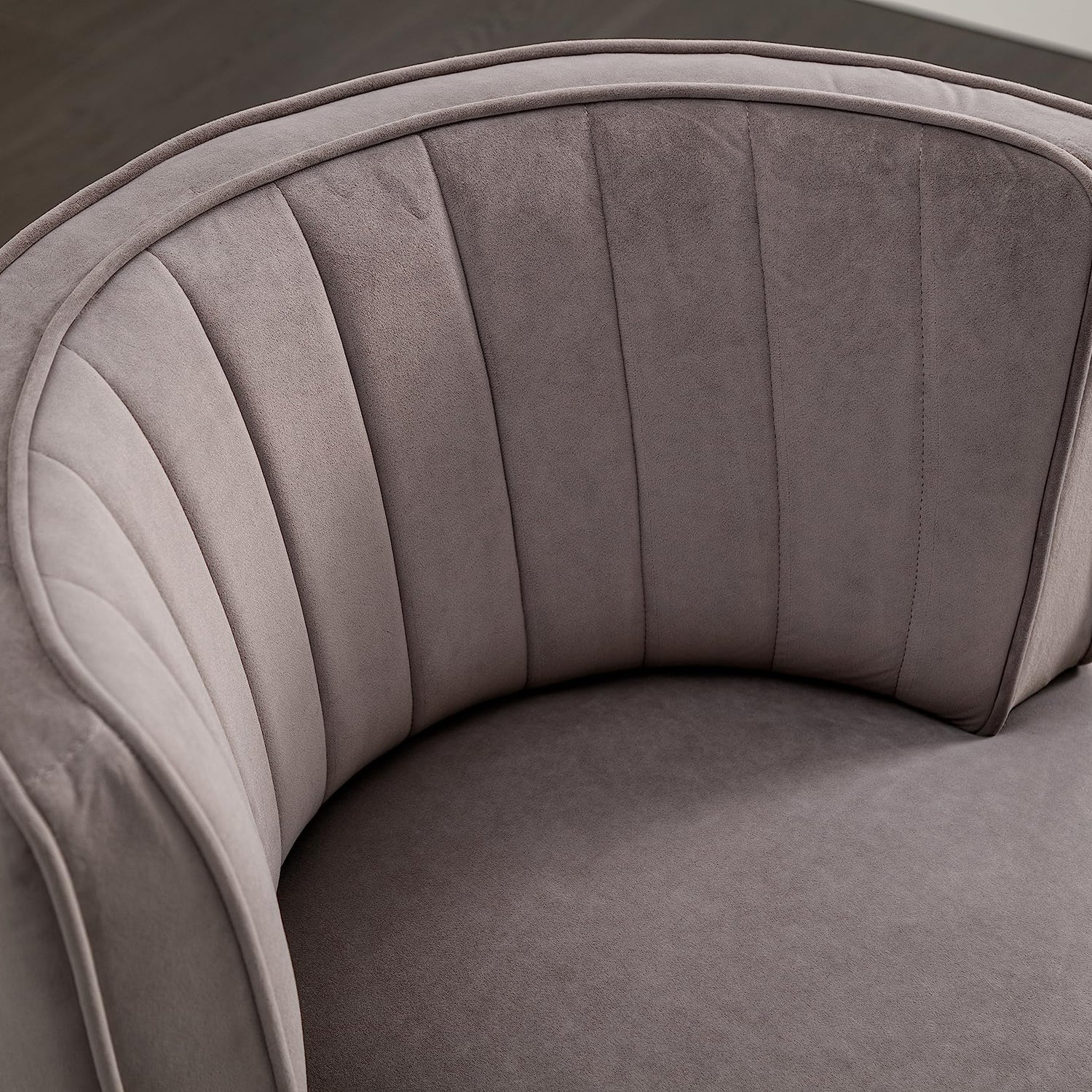 SLEERWAY 360° Swivel Barrel Chair, Modern Velvet Round Accent Chair, Comfy Upholstered Small Armchair with Gold Metal Base for Living Room Bedroom Nursery Office Sillas para Sala, Gray