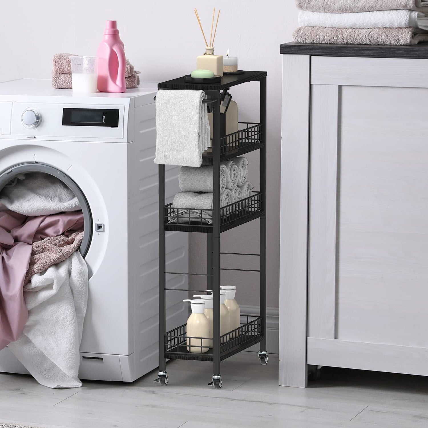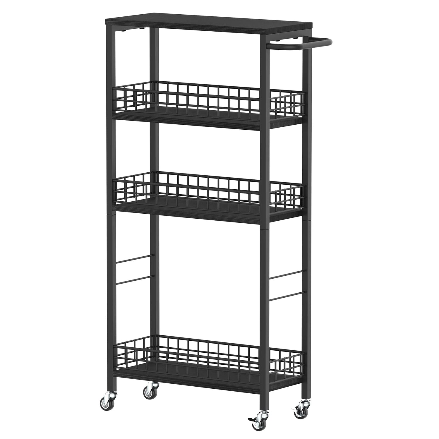 Narrow 4-Tier Rolling Storage Cart with Handle - Modern Black Utility Cart for Small Spaces