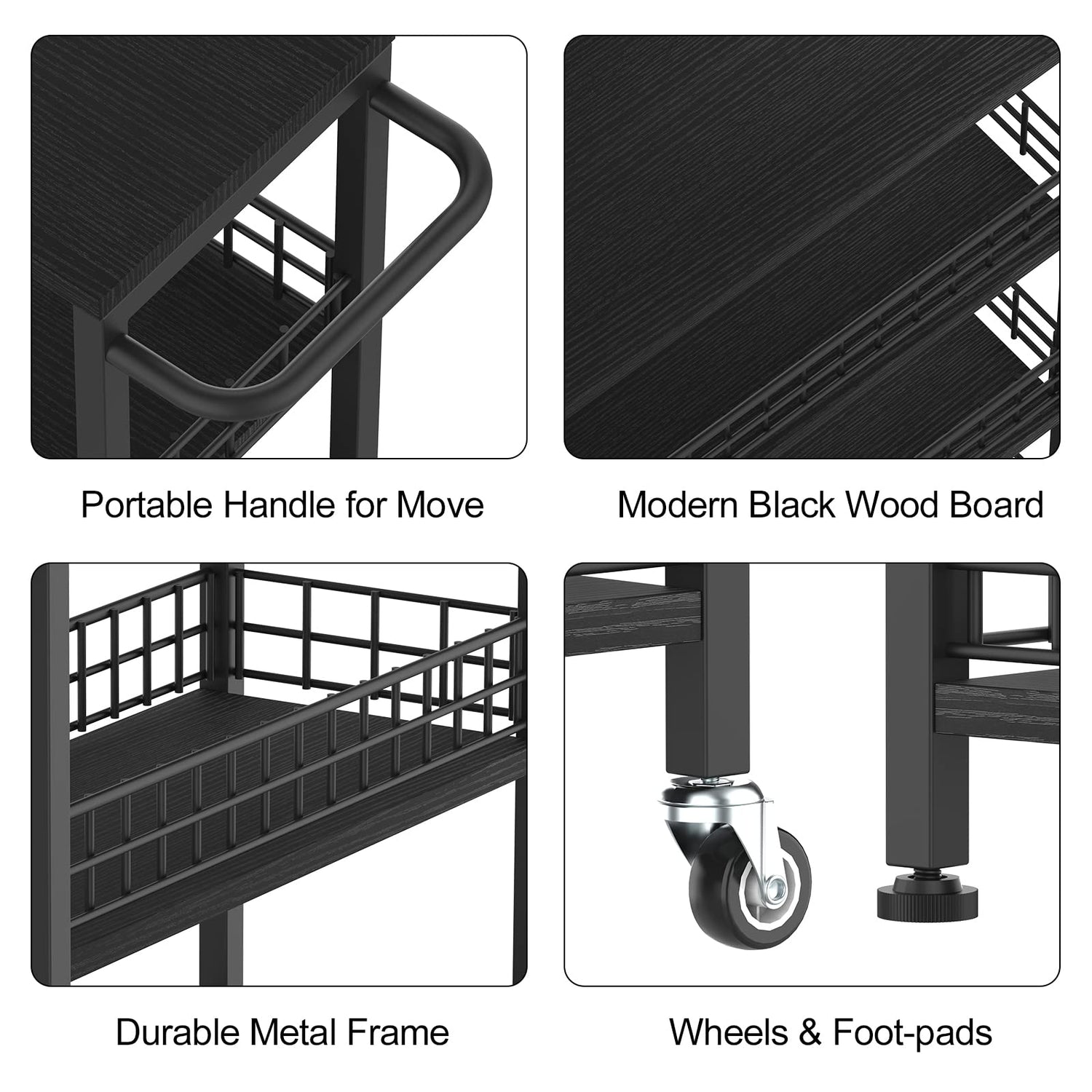 With its versatility, the modern black rolling cart can serve multiple purposes: as a kitchen rolling storage cart, a bathroom utility cart, a laundry organiser shelf with wheels, or even a narrow serving cart. Elevate your organisation with this sleek, functional solution that complements any decor.