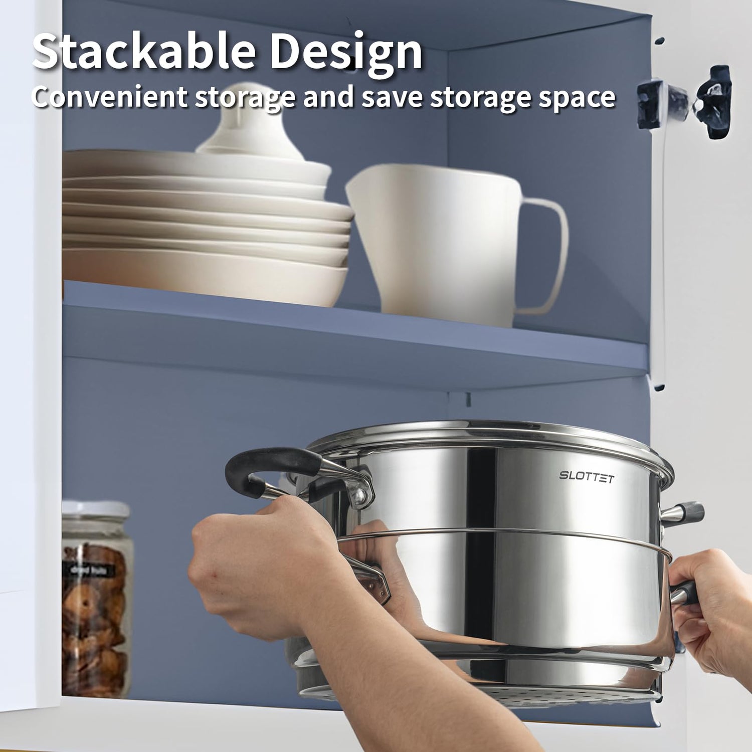 - Stackable Design :The stockpot can be stacked inside steamers,Convenient storage and Save storage space