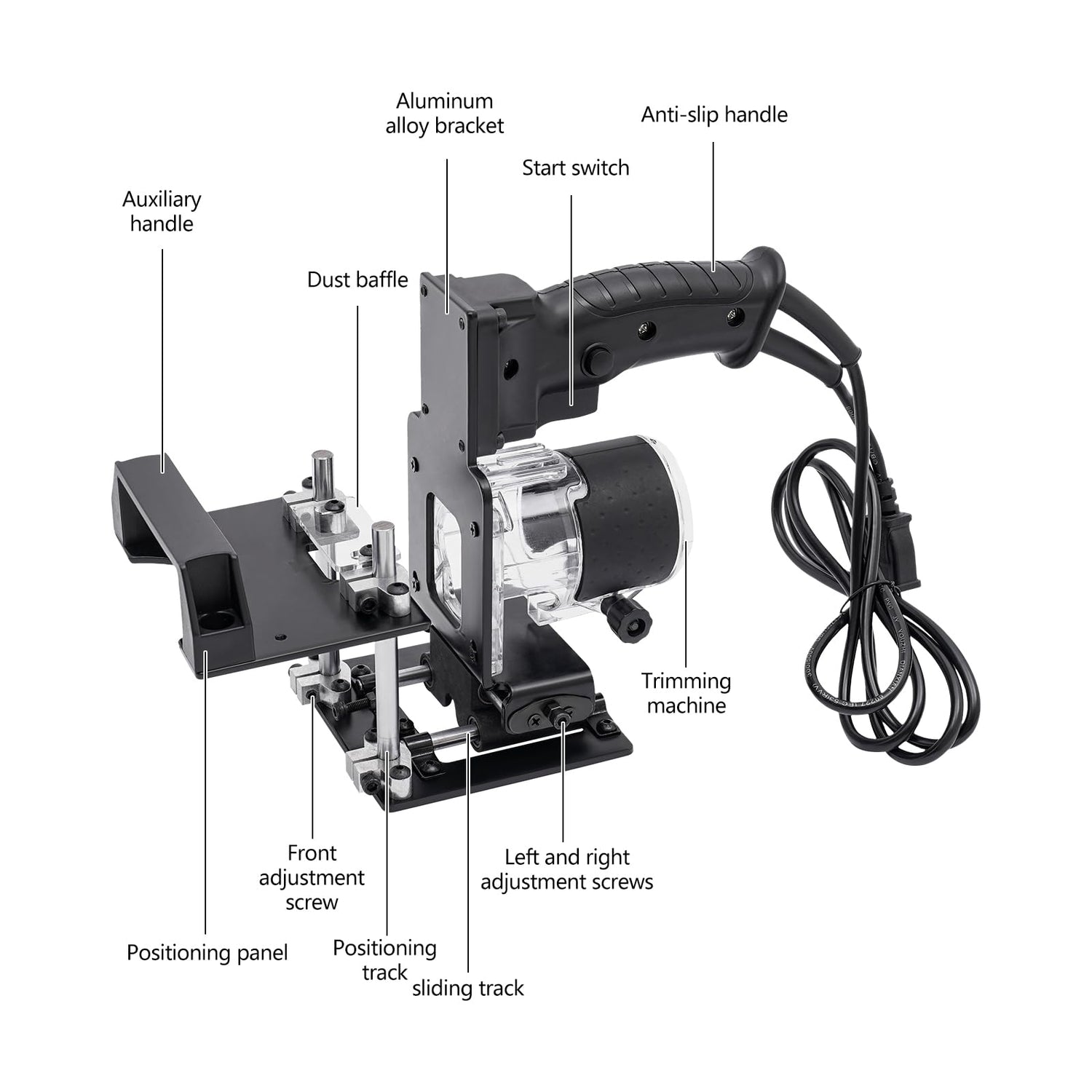 This woodworking slotting bracket is mainly made of high-quality carbon steel with excellent stability and durability. In addition, its one-key locking function, precise positioning adjustment, steel bearings, and clear dustproof baffle provide you with simple and flexible operation and an excellent and stable slotting experience, which greatly improves your working efficiency and productivity.