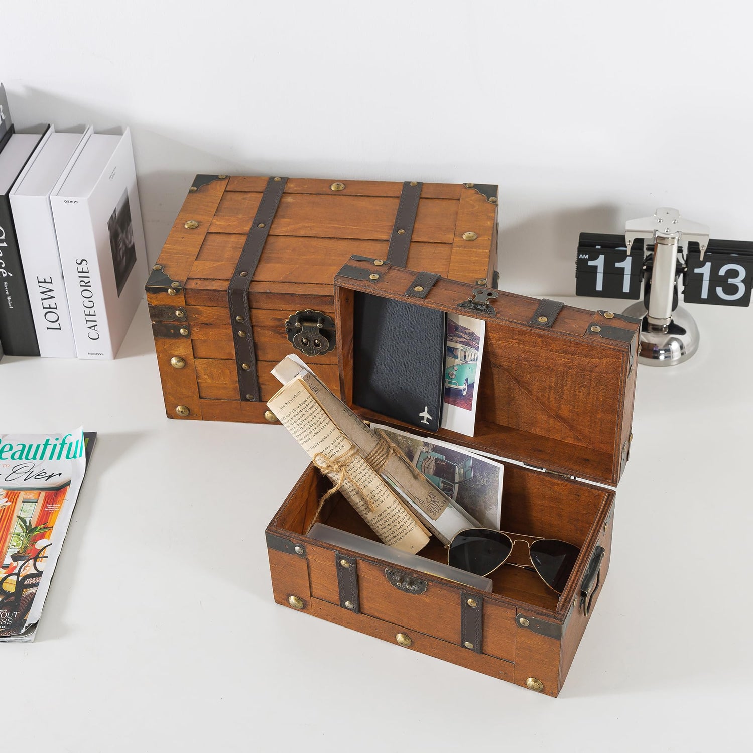 - VARYING SIZES FOR LIMITLESS POSSIBILITIES: Includes two trunks in different sizes—Large (13.7" x 8.6" x 7.1") and Small (11" x 6.3" x 5.3")—offering a range of storage options, ideal for travelers to store maps, postcards, or souvenirs.