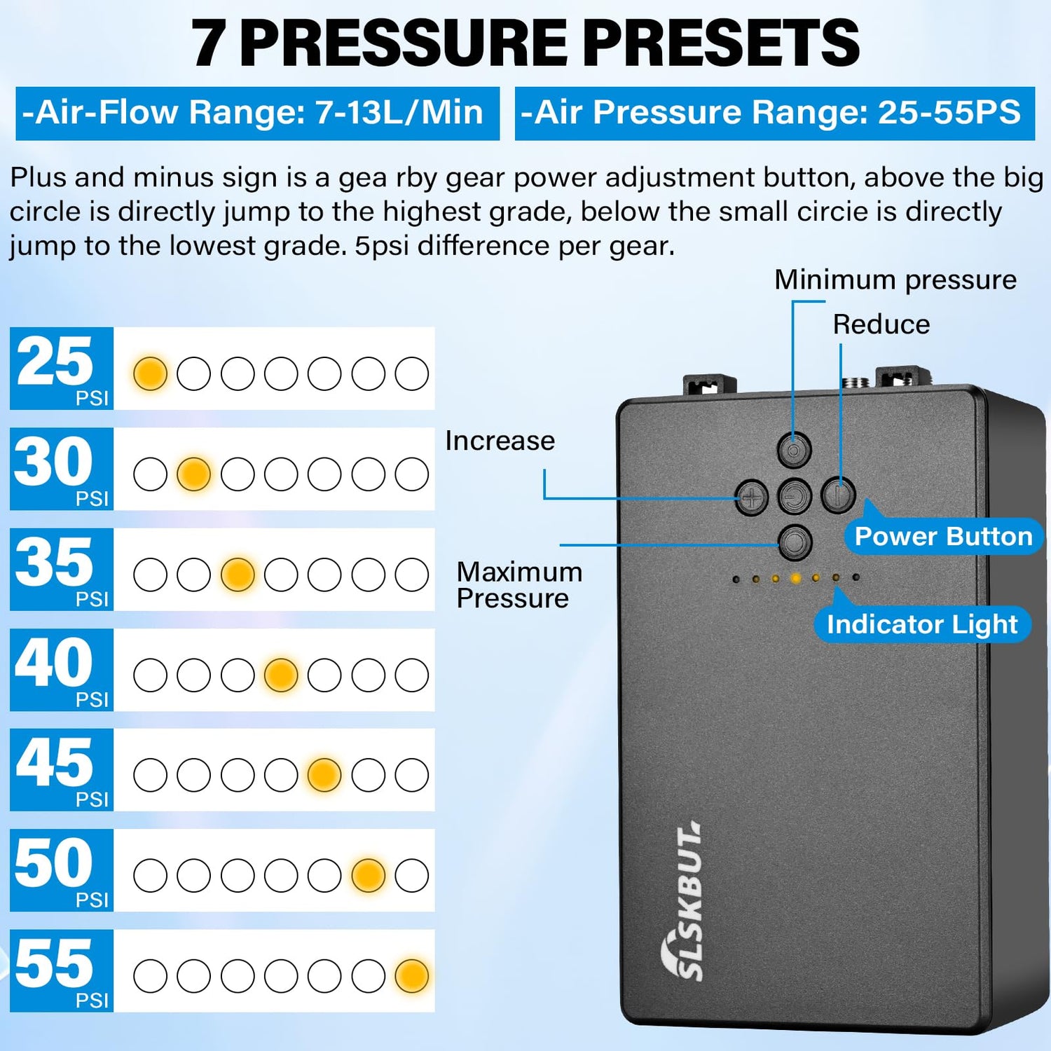 - Precision Control & Strong Performance: Experience unparalleled control with our professional airbrush kit with air compressor. Easily adjust between 7 pressure levels (25-55 PSI) using dedicated buttons, allowing instant selection of maximum or minimum pressure. This multi-gear system ensures stable, continuous output for all your projects.