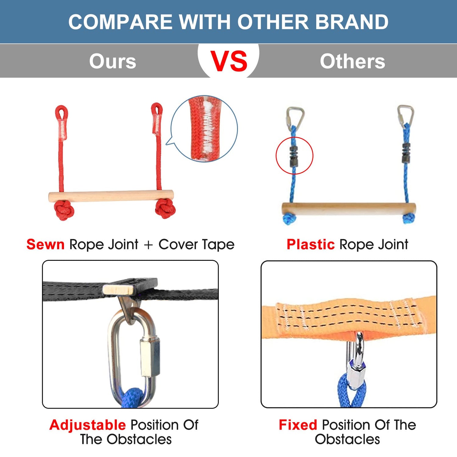 - Physical Fitness and Fun Trainning: The ninja slackline is a great exercise to complement your kids climbing. With our ninja warrior obstacle course with kids, your children can be well trained like balance, control and maneuvering. If you want to have fun with your kids, you can use our slackline kit for them to create their own gym no matter home or outdoor. The possibilities are endless