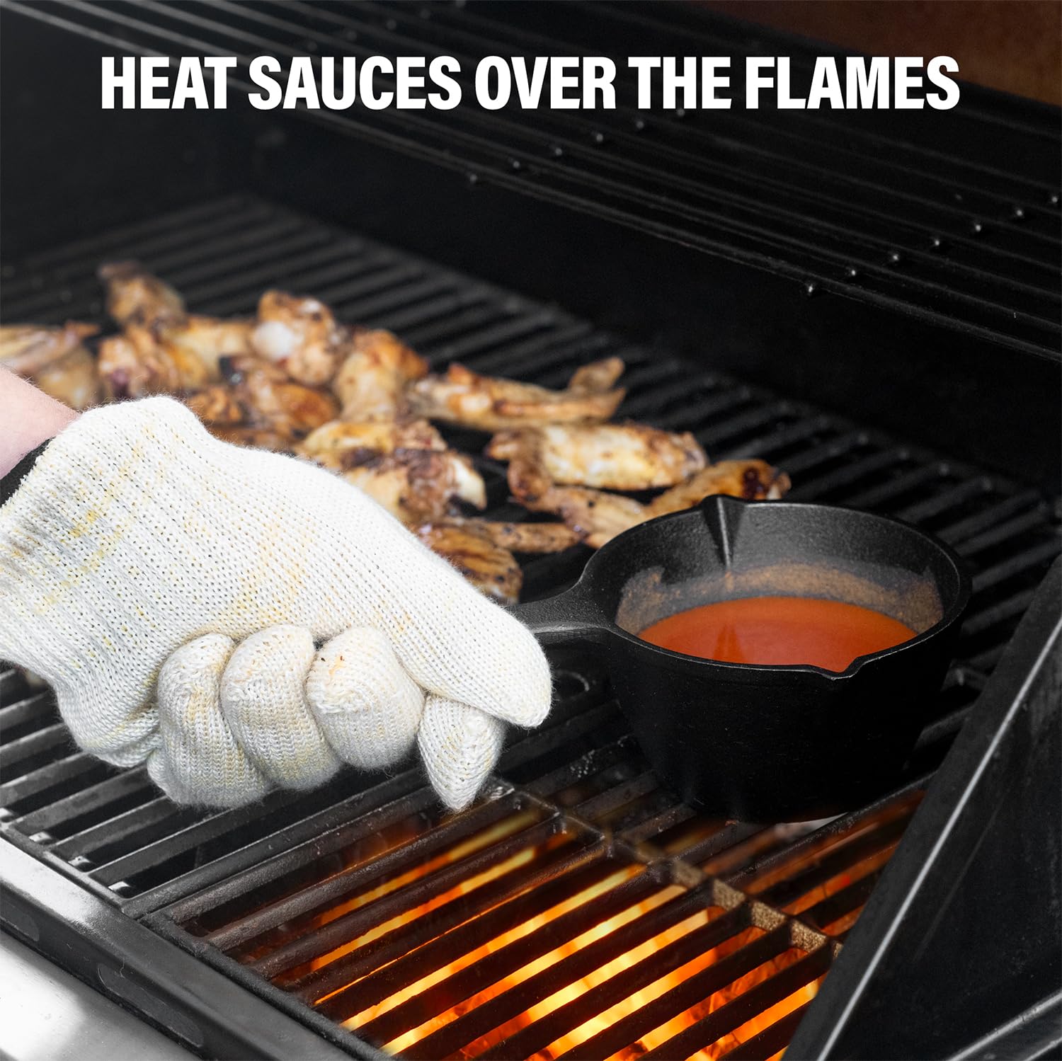 - Pre-Seasoned Basting Pot: Our cast iron basting pot is pre-seasoned with a thin layer of oil, ensuring that it's ready to use right out of the box. Plus, its durable construction means that it will stand up to high heat and frequent use for years to come, making it a reliable tool in your outdoor cooking arsenal.
