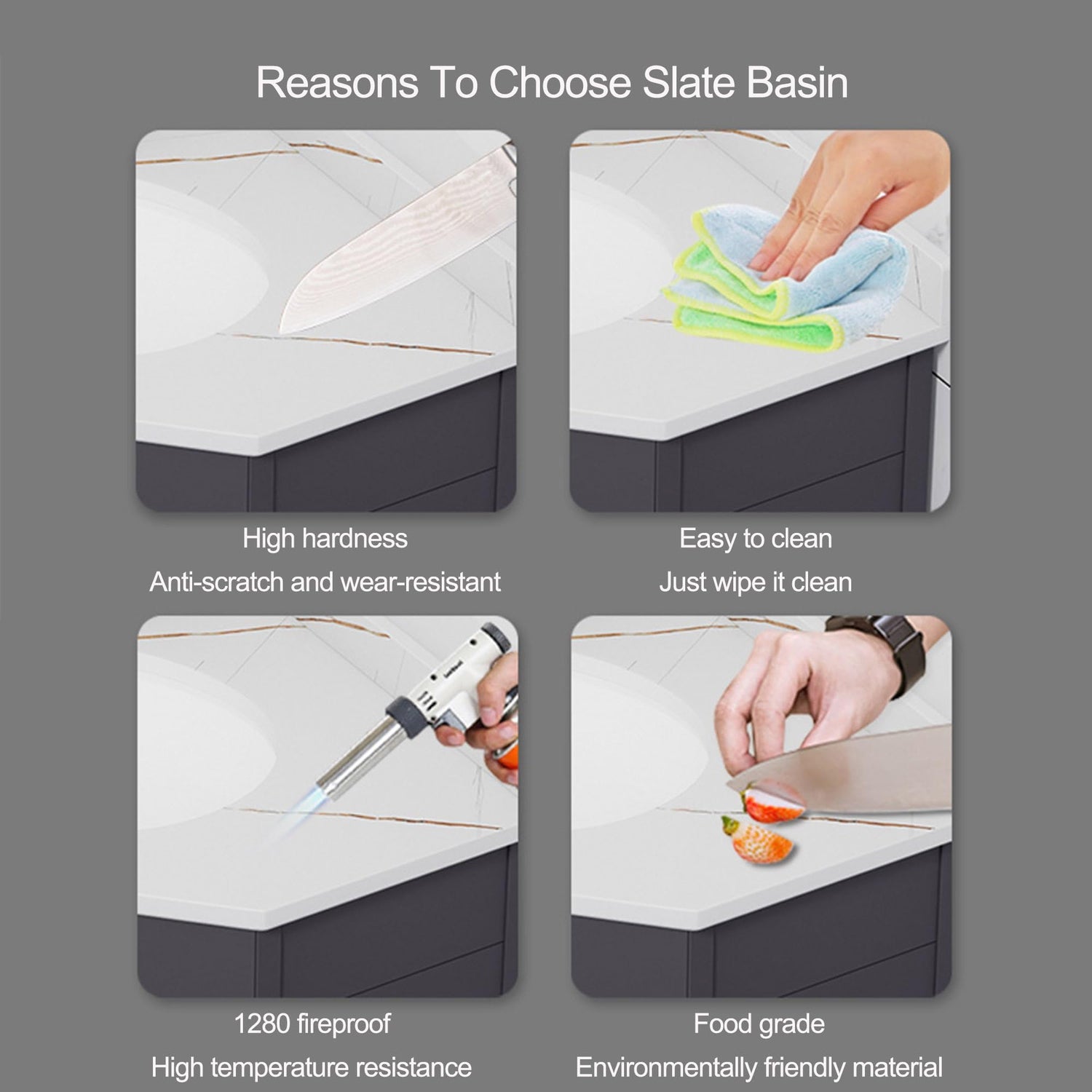 - 【Slate countertops,more beautiful】The bathroom vanity top made by rock slab,it is made of environmentally friendly materials and fired at 1200" high pressure and high temperature. It has strong plasticity, high temperature resistance, scratch resistance, anti-penetration, acid and alkali safety and other characteristics.