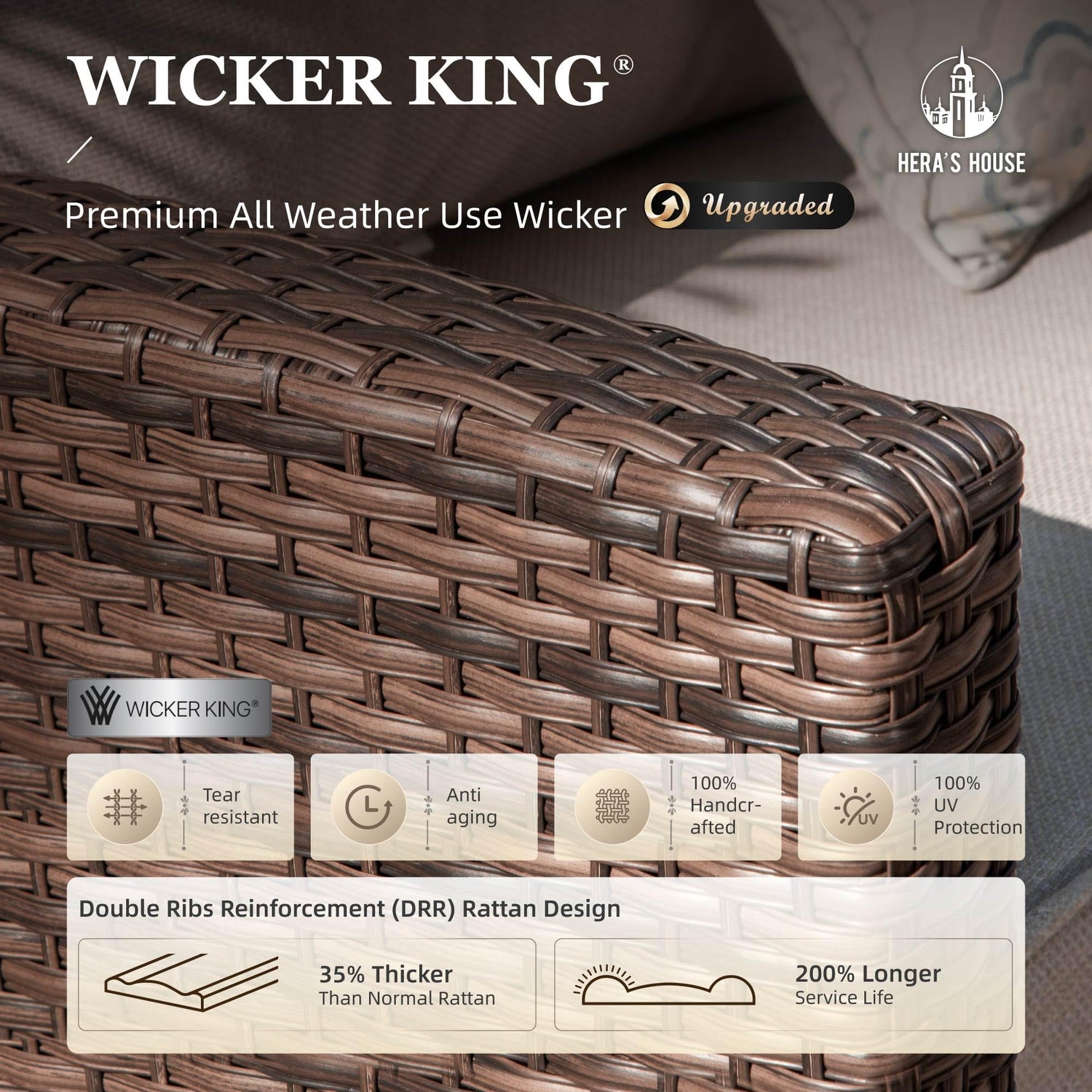 - 【 All-Weather Wicker】The outdoor patio furniture won't fade or dry crack with high-quality, handwoven weather-resistant PE rattan. The steel frame is built with E-Coating& Powder-Coating which makes the outdoor seating resistant to sag, rust or aging, while also guaranteeing aesthetics, robustness and durability for indoor or outdoor use