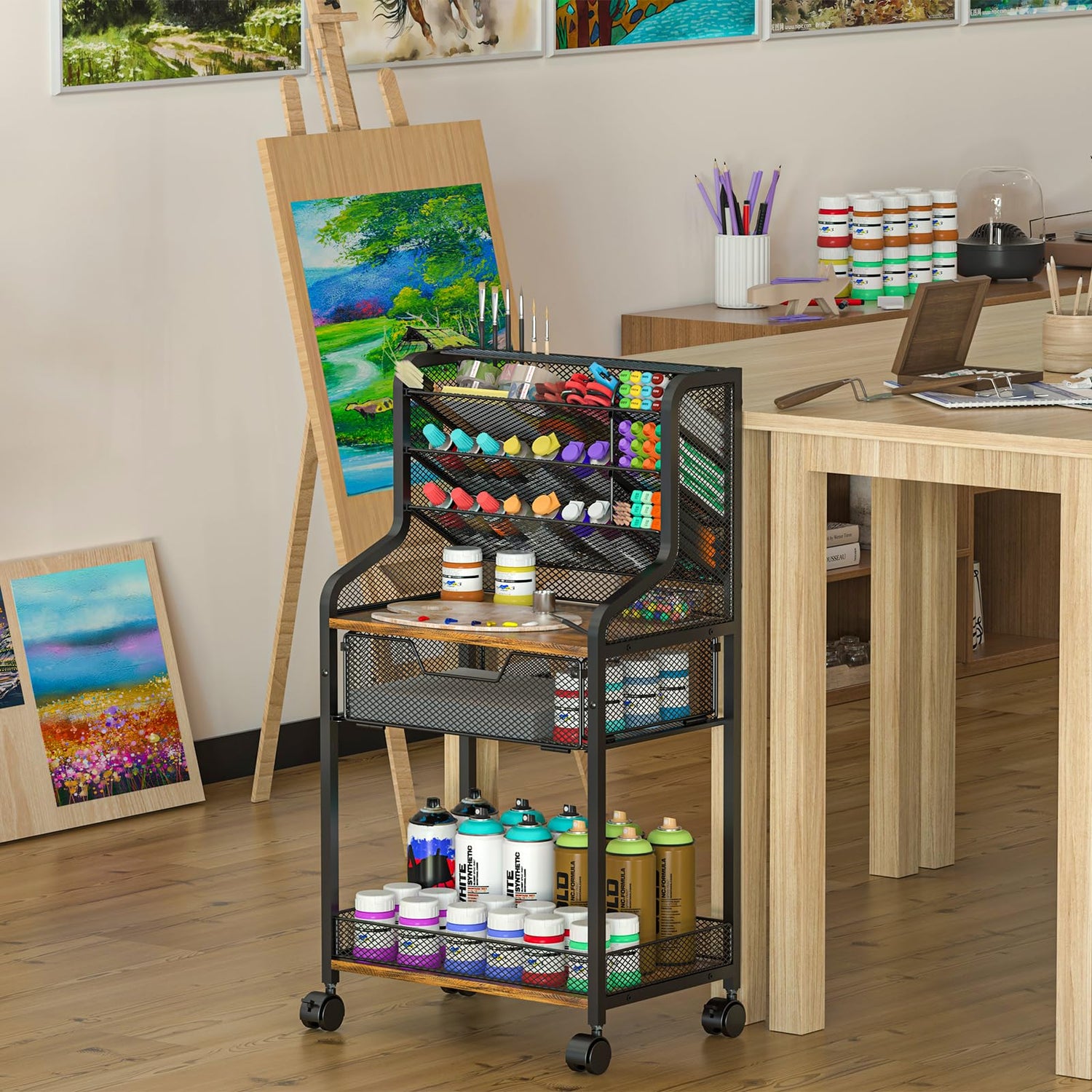 - 【Metal & Wood & Rim】This craft organizer is made of durable metal and wood. The bottom has a rim, When moving the rolling carts with wheels, the paints will not fall. The metal and wood of the 3 tier rolling cart gives the rolling storage cart excellent load bearing and stability.