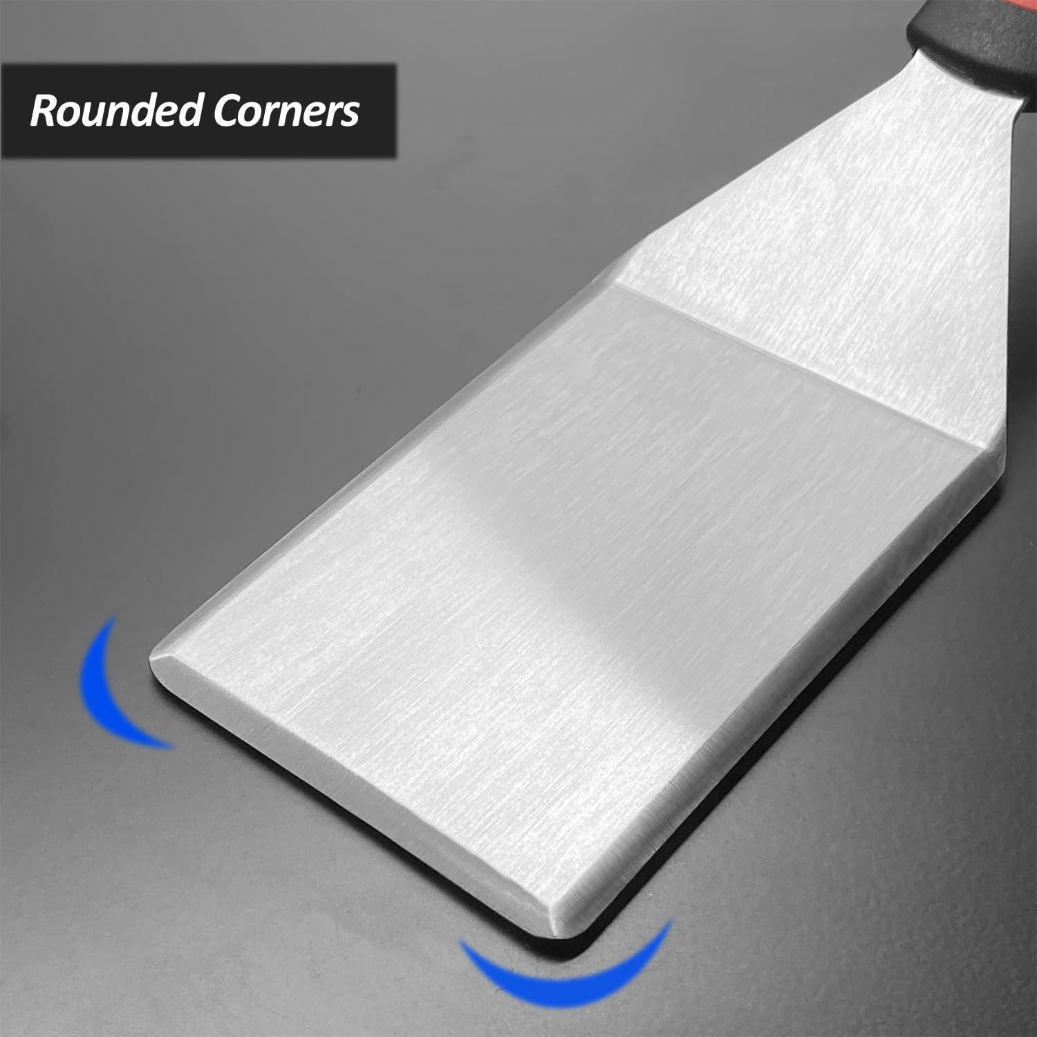 - Multi-purpose Turner Spatula: This griddle spatula has 3x4 inch long blade, perfect for bbq, grill, and for cast iron or flat top cooking.
