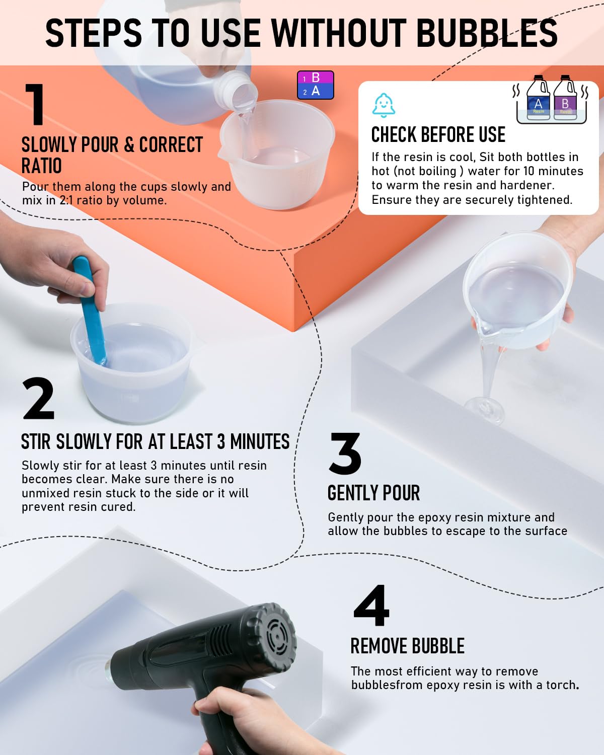 - 【💎Wide Application】: Our self leveling & self degassing epoxy resin ideal for all casting, coating and art projects including cutting resin art, resin jewelry, coating artwork and molds, mica powder, deep resin molds, also all pigments like alcohol ink, mica powder.