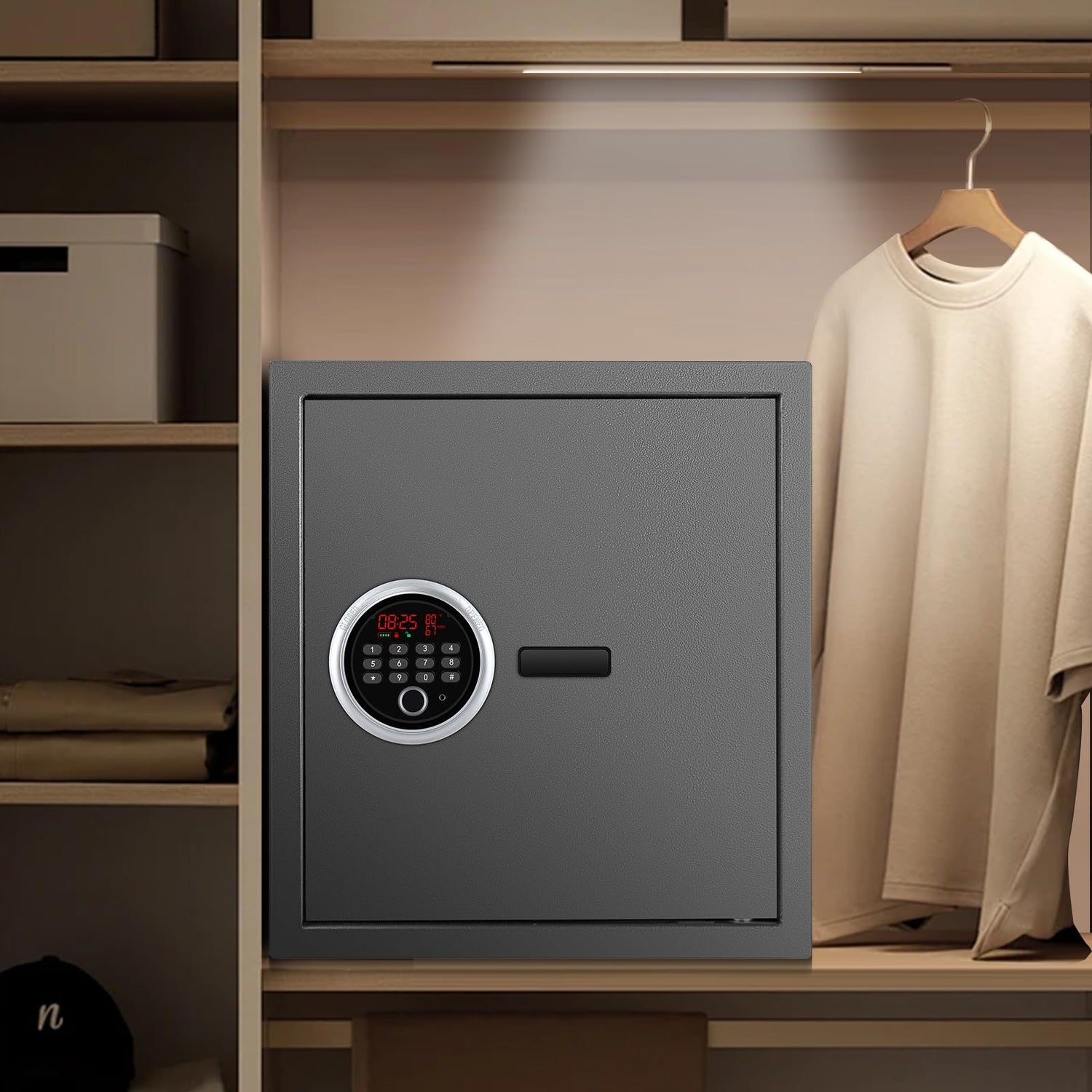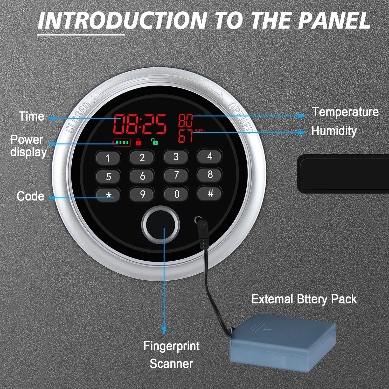 Smart Security Cabinet Safe, Steel Lock Box hand Gun Safe -Perfect for Home/Office/Hotel, Secure Pistols, Documents, Jewelry, Valuables (Biometric Grey Safe with Screen-13.75"x13"x15")