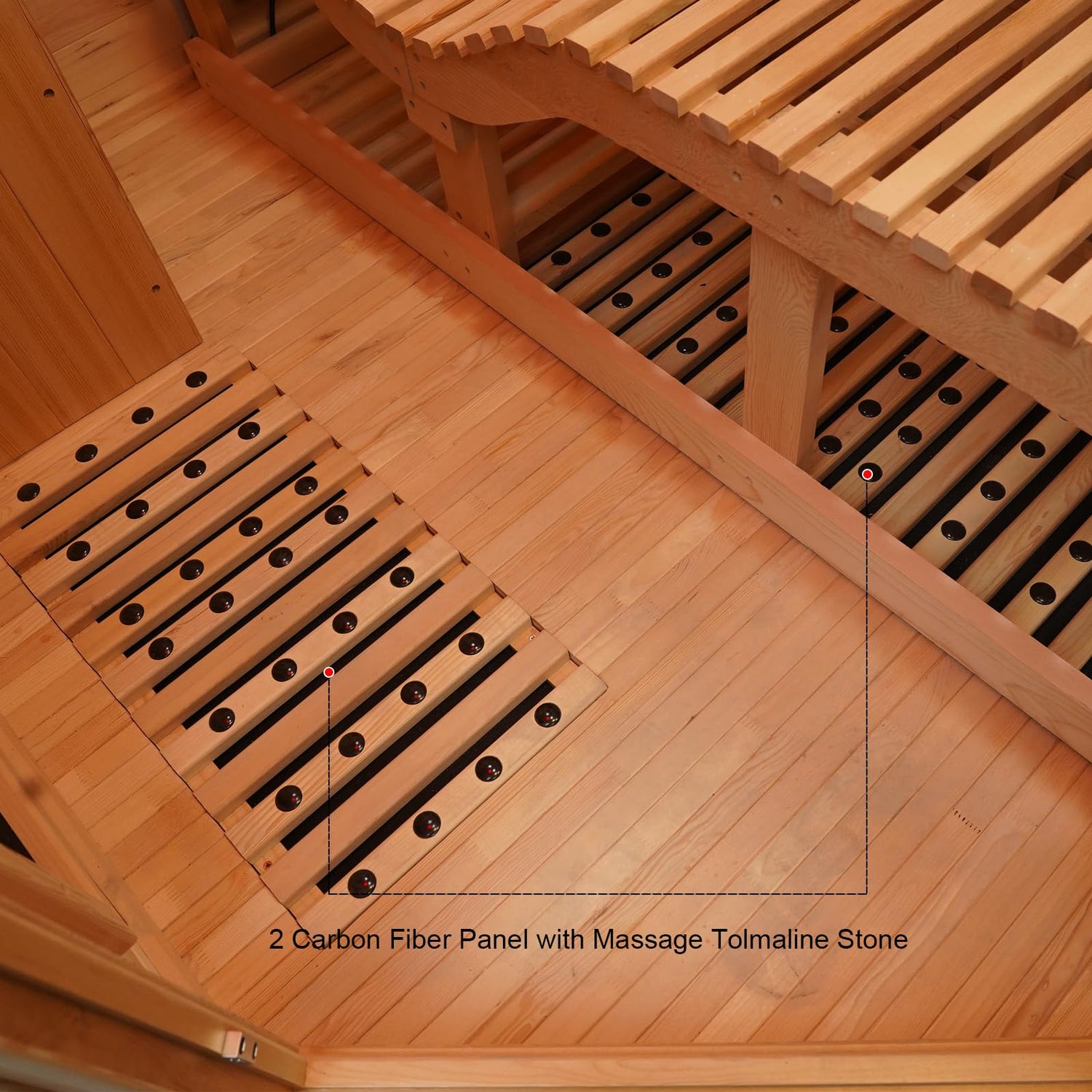 - Fast Heating: Surround your body with heat being delivered by 4 carbon heating panels and 4 pure ceramic tubes, the far-infrared bio-spectrum emitted is close to the body's own wavelength and is more easily absorbed, the bottom of the sauna room is equipped with tourmaline stones, allowing you to absorb minerals while enjoying the sauna
